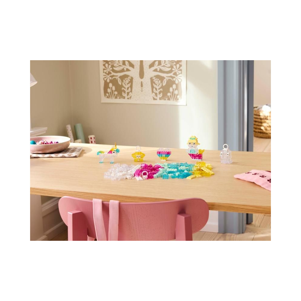 A gyerekek először egy szív, egy szellem, egy sellő, egy csillag és egy unikornis modelljét építik meg. Építési önbizalmuk növekedni fog, és elkezdhetnek építeni egy űrhajót, egy felhőt, egy üstököst, egy madarat, egy narvált, egy fagylaltot és egy virágot. Kreatív szórakozásban is részesülnek, miközben egy nagy kastélyt és egy sárkányt építenek. Az áttetsző kockák, a szemekkel és szájakkal ellátott darabok, valamint a kiállítható, felakasztható darabok még több bájt és kreatív szórakozást kölcsönöznek a gyermekek alkotásainak.