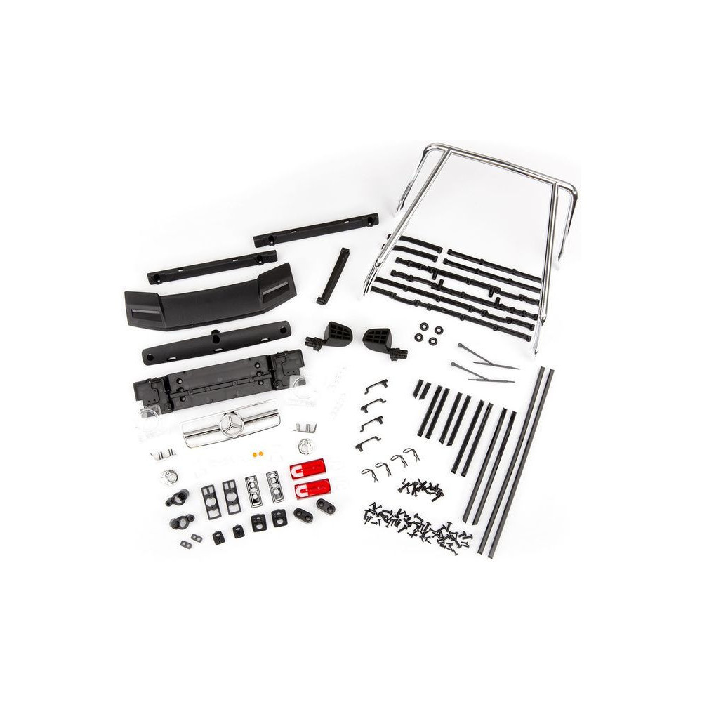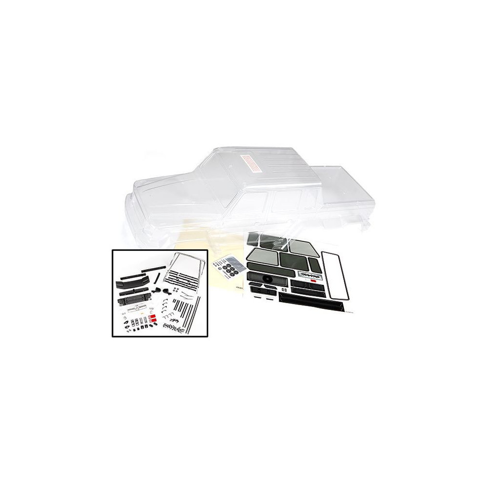 Traxxas Mercedes-Benz G 63 karosszéria - átlátszó, festést igényel. Tartalmaz matricákat, első hűtőrácsot, tükröket, kilincseket, ablaktörlőket.