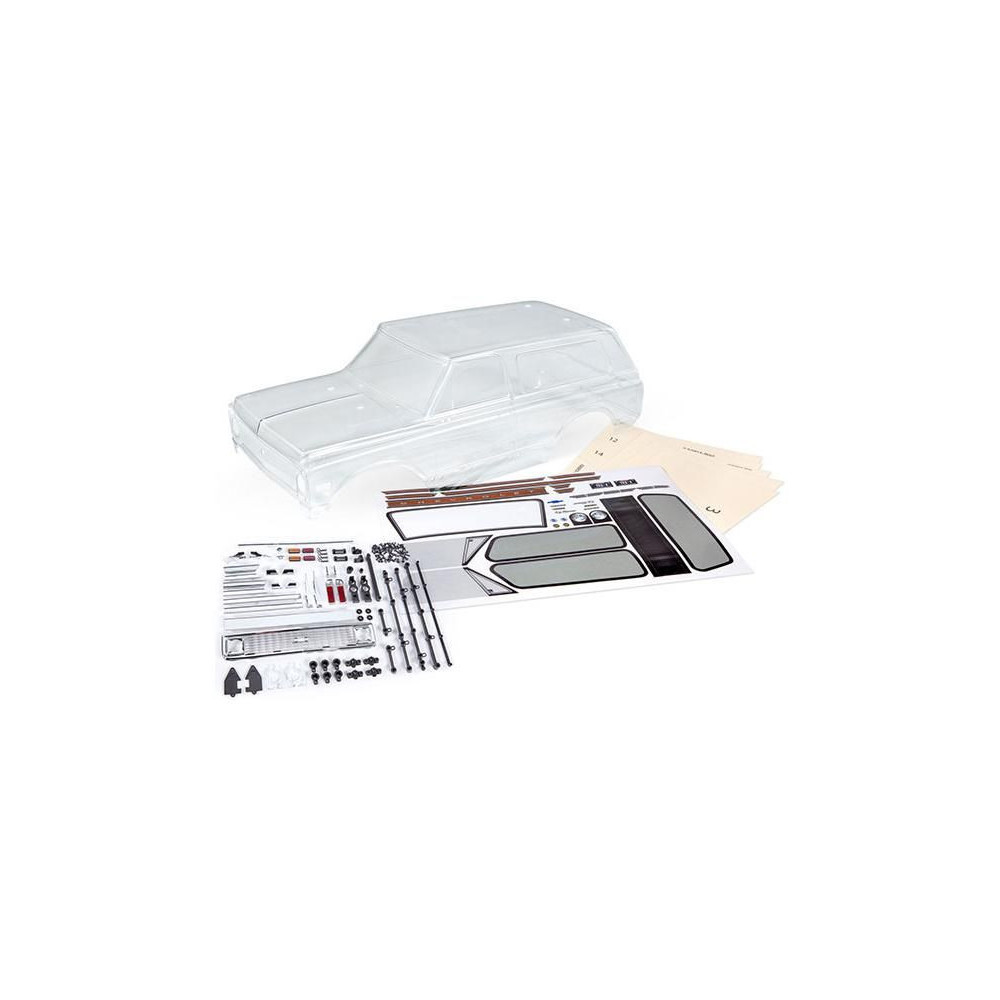 Traxxas Chevrolet Blazer (1972) áttetsző karosszéria, beleértve a makett tartozékokat - a 312 mm-es tengelytávú TRX-4 modellekhez. A karosszériát festeni kell.