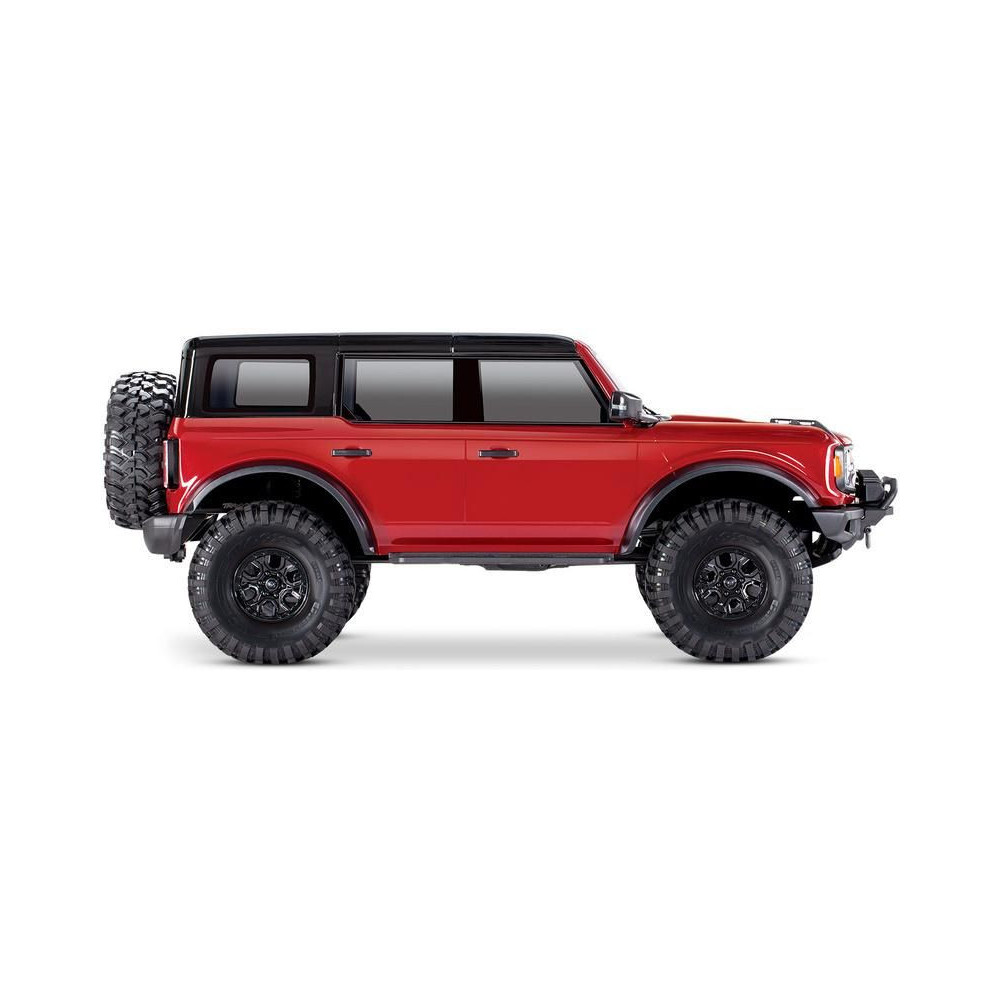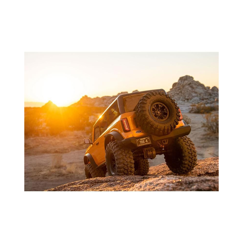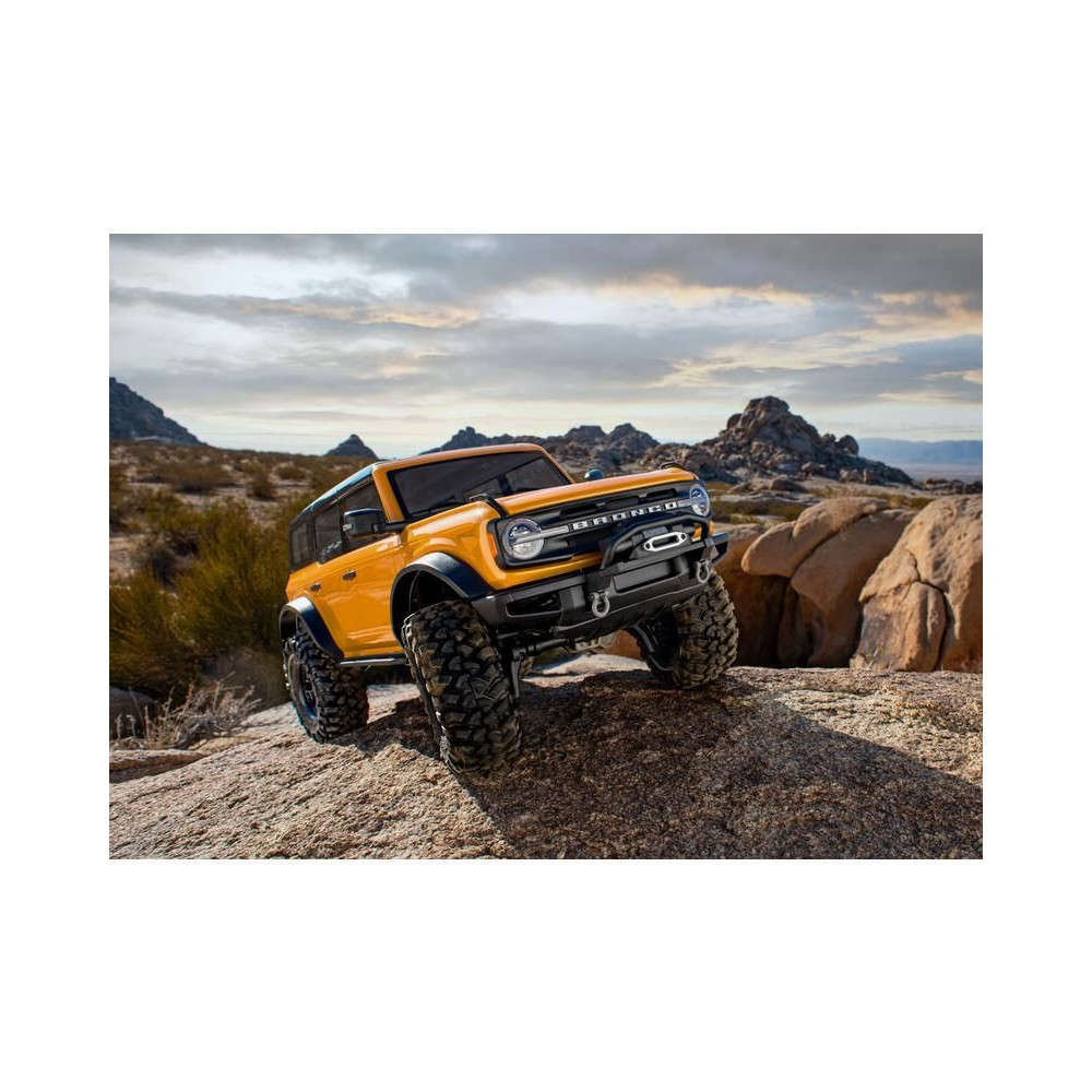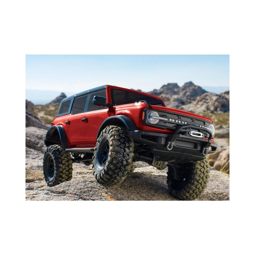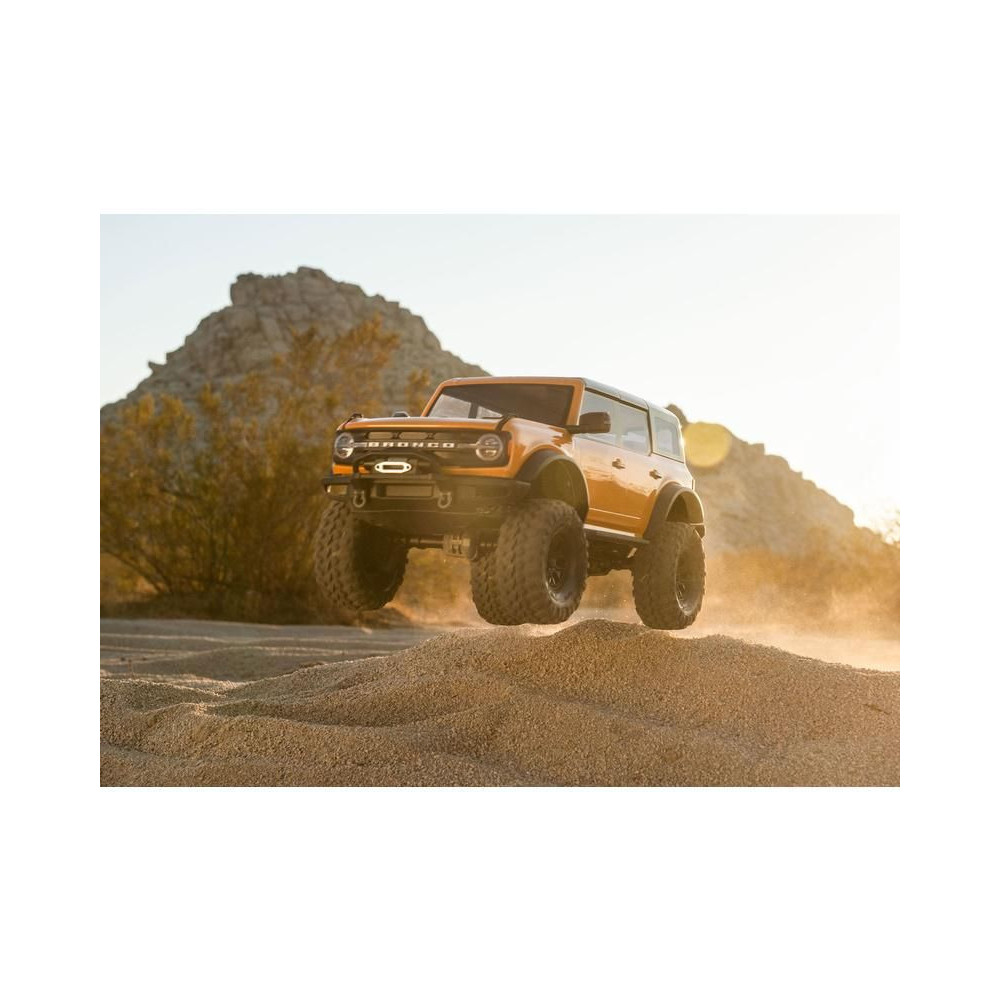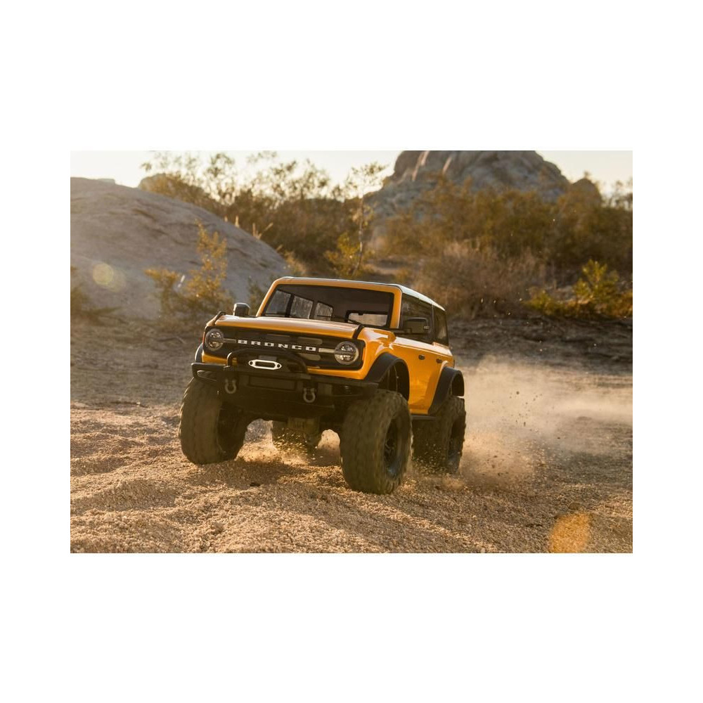 Egy amerikai legenda új, modern köntösben tér vissza. 25 év után a Ford Bronco visszatért a márka legerősebb terepjáró modelljeként és Amerika egyik legkeresettebb SUV-jaként. A Traxxas ennek az ikonnak a szellemét ültette át távirányítós autójába. A 2021-es Ford Bronco teljesen új, licencelt karosszériája a jól bevált TRX-4 alvázra kerül. A karosszéria mostantól klipsz nélküli. A részletesen kidolgozott karosszéria gyönyörű íveit, az átlátszó ablakokkal, a behajtható tükrökkel, az ablaktörlőkkel, a kilincsekkel és a pótkerékkel már nem zavarják a kapcsos oszlopok. A karosszéria készen áll az eredeti Pro Scale világítás felszerelésére is (külön megvásárolható), az igazi autóval megegyező funkciókkal (működő irányjelzők, féklámpák, tolatólámpák, különböző intenzitású fényszórók, hátsó lámpák).