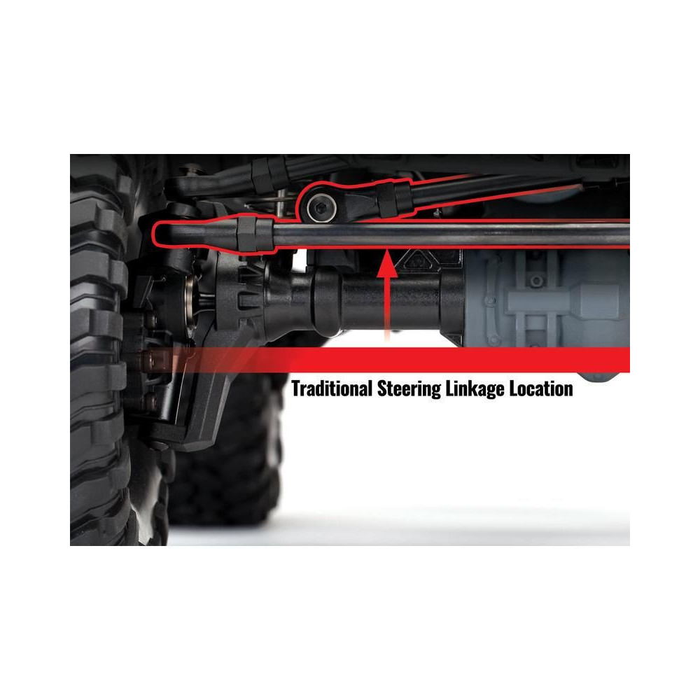 A TRX-4 alváz portáltengelyeket használ tengelyhajtással. A tengelyáttétel növeli a hasmagasságot, csökkenti a differenciálművekre, a sebességváltóra és a hajtótengelyekre ható igénybevételt, és tovább csökkenti a torziós erőket - a modell kevésbé dől el.