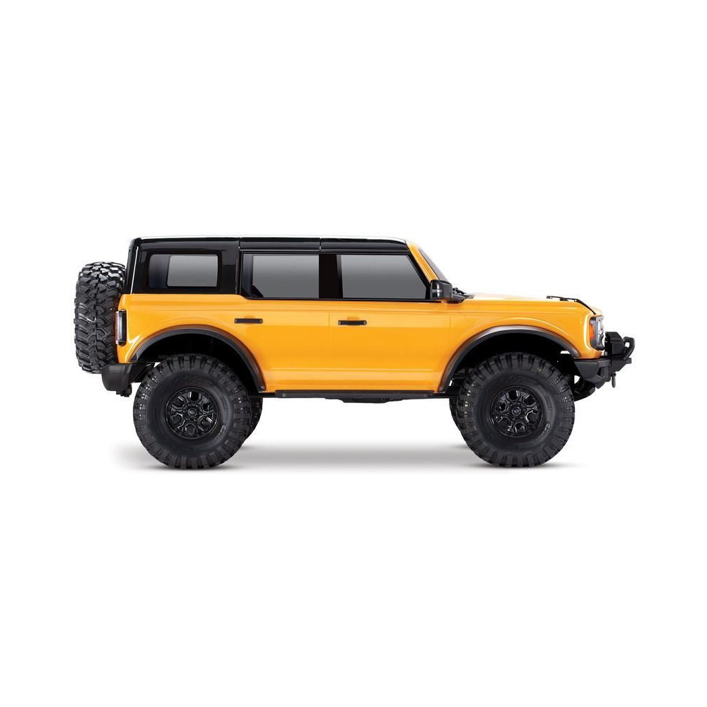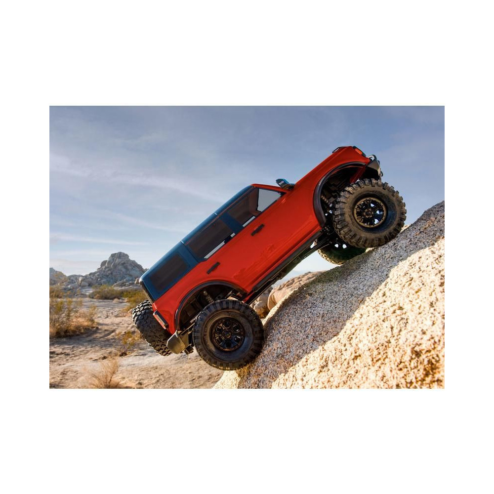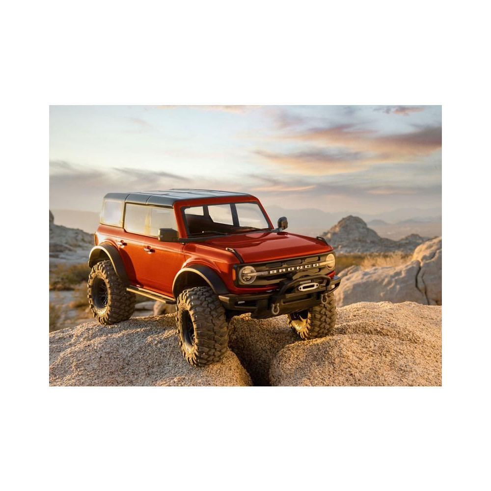 Egy amerikai legenda új, modern köntösben tér vissza. 25 év után a Ford Bronco visszatért a márka legerősebb terepjáró modelljeként és Amerika egyik legkeresettebb SUV-jaként. A Traxxas ennek az ikonnak a szellemét ültette át távirányítós autójába. A 2021-es Ford Bronco teljesen új, licencelt karosszériája a jól bevált TRX-4 alvázra kerül. A karosszéria mostantól klipsz nélküli. A részletesen kidolgozott karosszéria gyönyörű íveit, az átlátszó ablakokkal, a behajtható tükrökkel, az ablaktörlőkkel, a kilincsekkel és a pótkerékkel már nem zavarják a kapcsos oszlopok. A karosszéria készen áll az eredeti Pro Scale világítás felszerelésére is (külön megvásárolható), az igazi autóval megegyező funkciókkal (működő irányjelzők, féklámpák, tolatólámpák, különböző intenzitású fényszórók, hátsó lámpák).