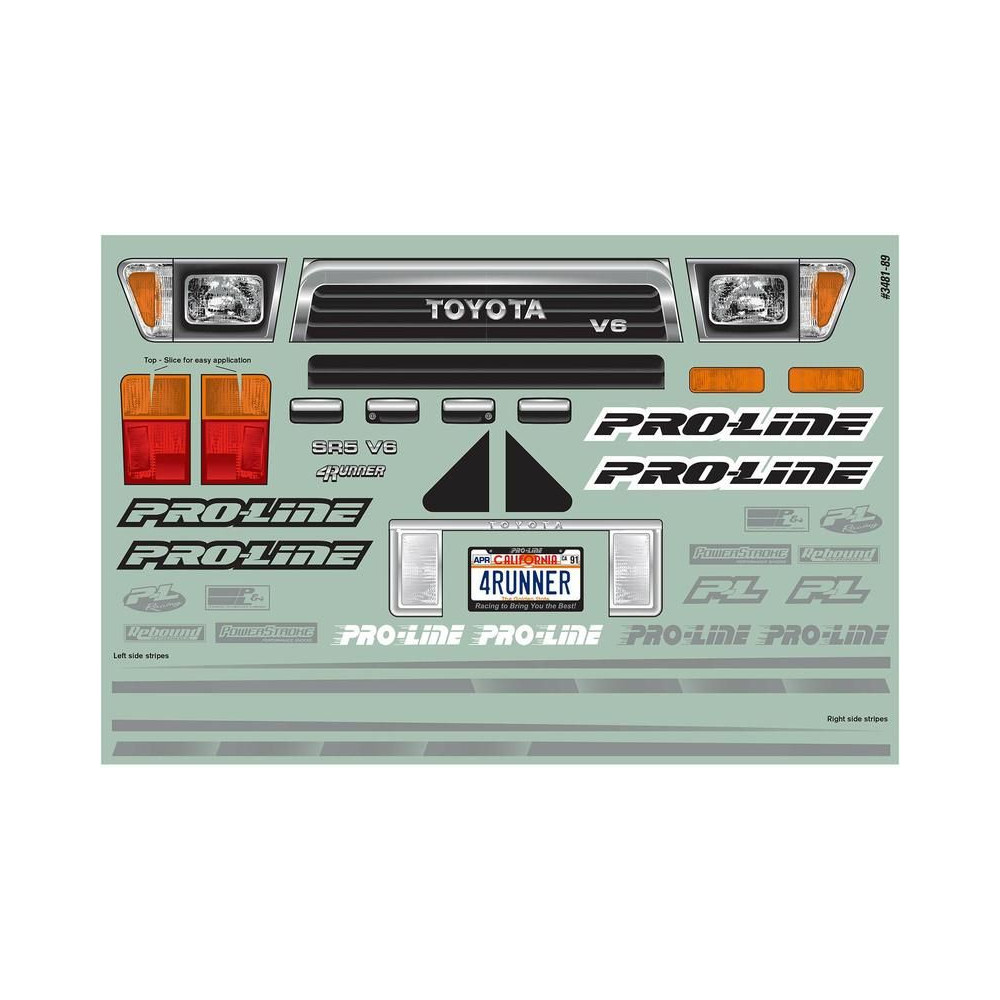A 4Runner terepjárók második generációja alkotja azokat az ikonikus járműveket, amelyek számos teljes méretű terepjáró alapjául szolgálnak. A Pro-Line egy másik teljesen licencelt karosszériája az 1991-es Toyota 4Runner! Most egy eredeti Toyota karosszériával sajátot kaphatsz a mock crawleredhez. A matricákat tartalmazza az első maszk elkészítéséhez lámpákkal, feliratok és részletek hozzáadásához.