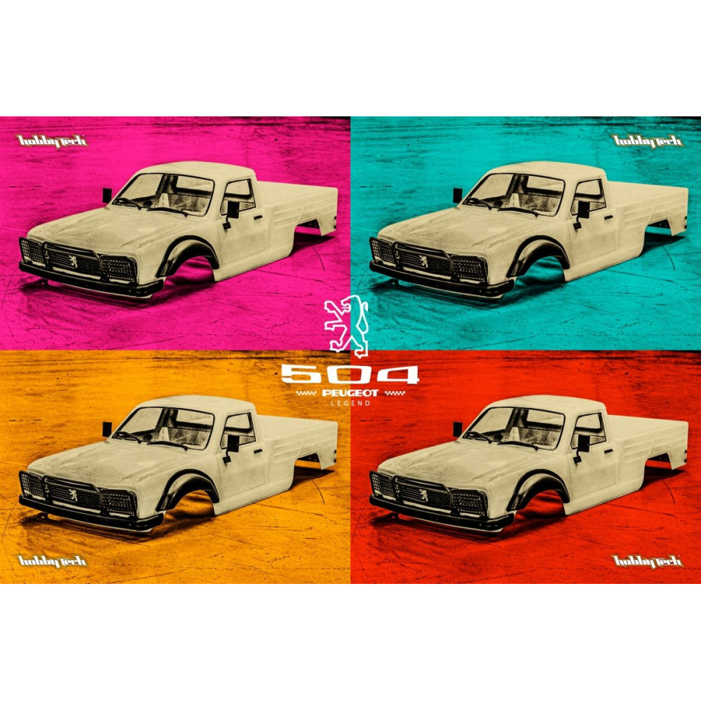 A HOBBYTECH, a rádióvezérlésű alvázak/modellek francia tervezője és gyártója büszkén kínálja Önnek az 504-es pick-up karosszéria licenc alapján készült reprodukcióját. Ebben a dobozban számos tartozékot kínálunk (sárvédők, fényszóróvédő, fényezés), amelyek lehetővé teszik, hogy reprodukálja az Ön által választott változatot.