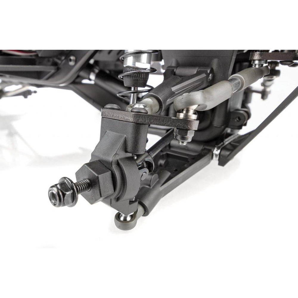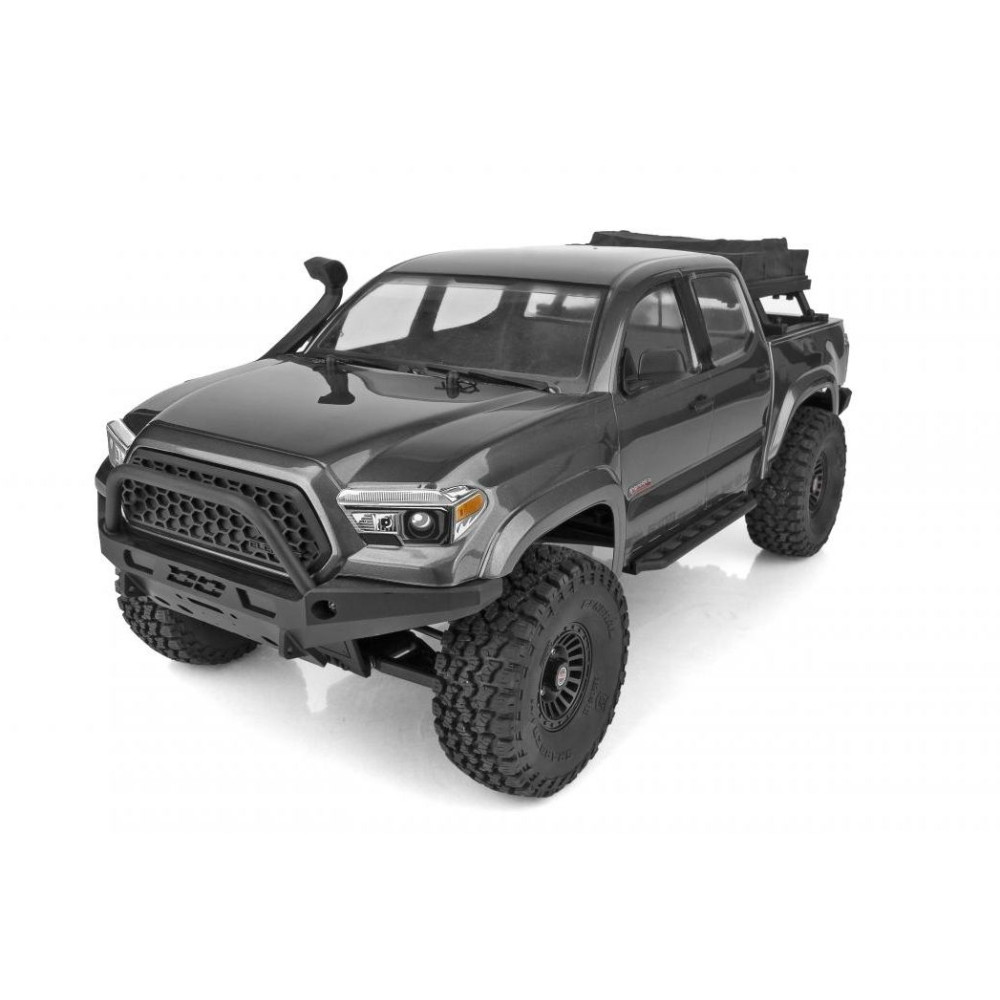 Teljesen összeszerelt expedíciós modell egyenáramú motorral, vízálló szabályozóval és fém fogaskerékkel ellátott szervóval. RC-készletet tartalmazó modell.