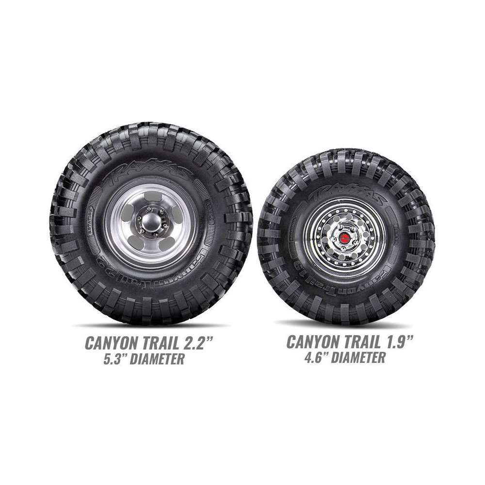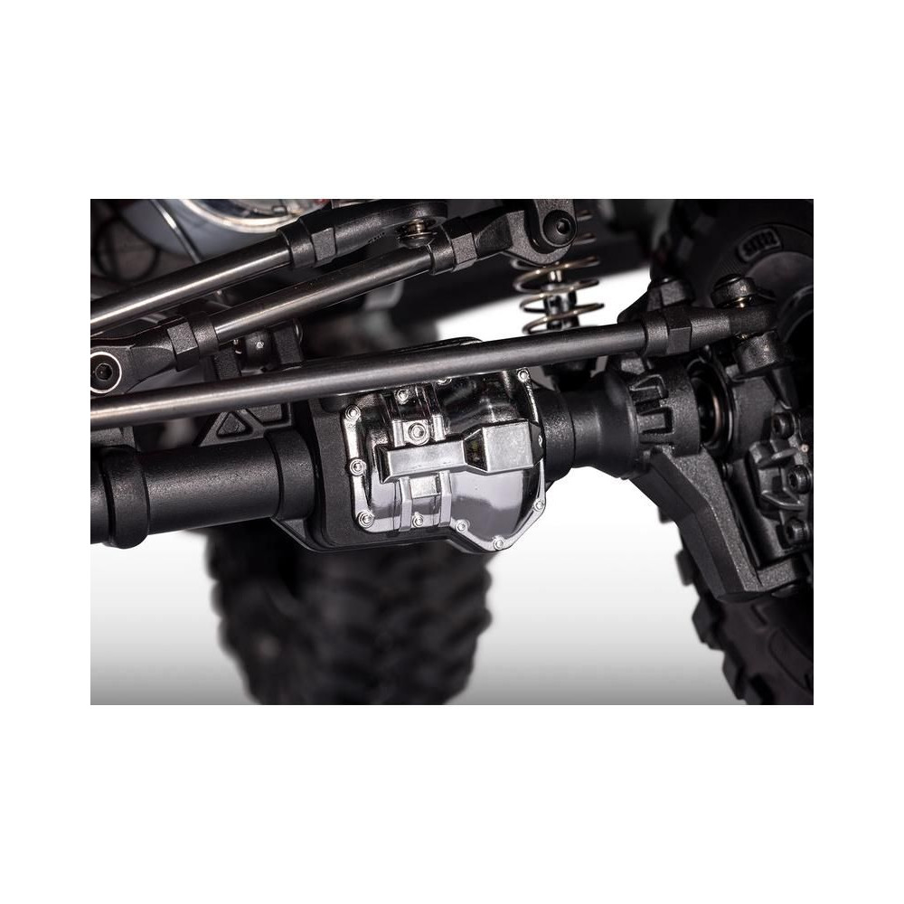 A gyárilag beszerelt Long Arm Lift készlet 2,5 cm-rel növeli a hasmagasságot. Ez lehetővé teszi a nagyobb, 2,2"-os kerekek használatát Canyon Trail gumiabroncsokkal. Ezzel a felszereléssel az RC modell verhetetlen lesz terepen.