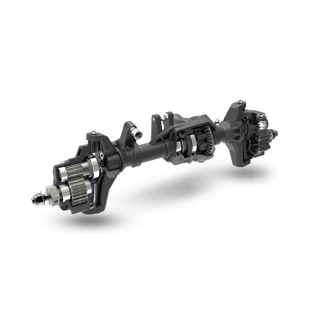 A TRX-4 alváz portáltengelyeket használ tengelyváltóval. A tengelyváltó növeli a hasmagasságot, csökkenti a differenciálművekre, a sebességváltóra és a hajtótengelyekre ható igénybevételt, és tovább csökkenti a torziós erőket - a modell kevésbé billen.