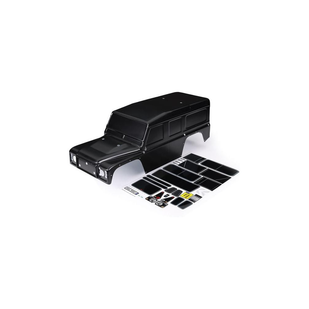 Pótalkatrész Traxxas RC autó modellekhez TRX4 alvázon: karosszéria Land Rover Defender fekete színű matricákkal. 324 mm-es tengelytávhoz.