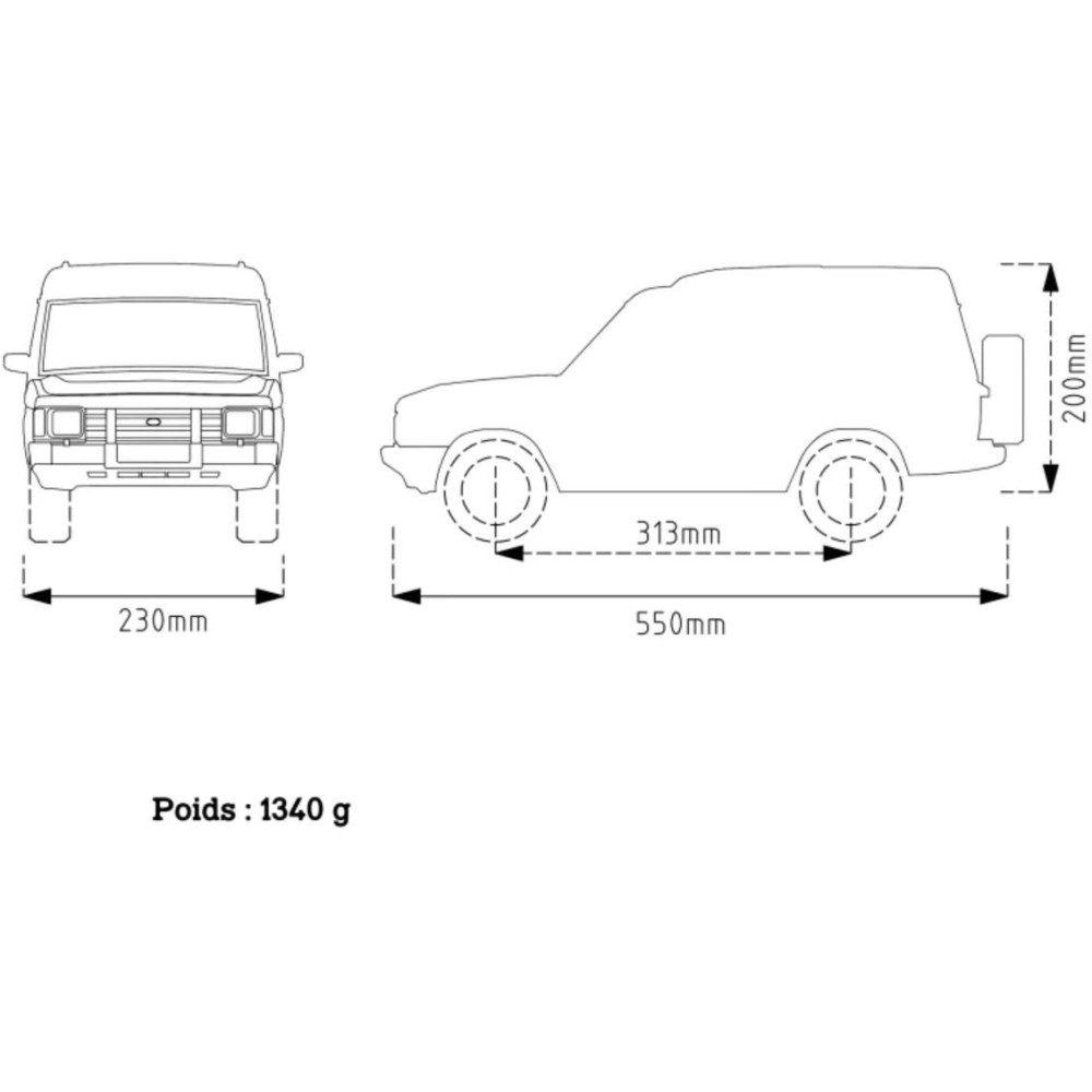 Merev ABS karosszéria 1:10 méretarányban, 313 mm-es tengelytávval a híres brit autó alapján.