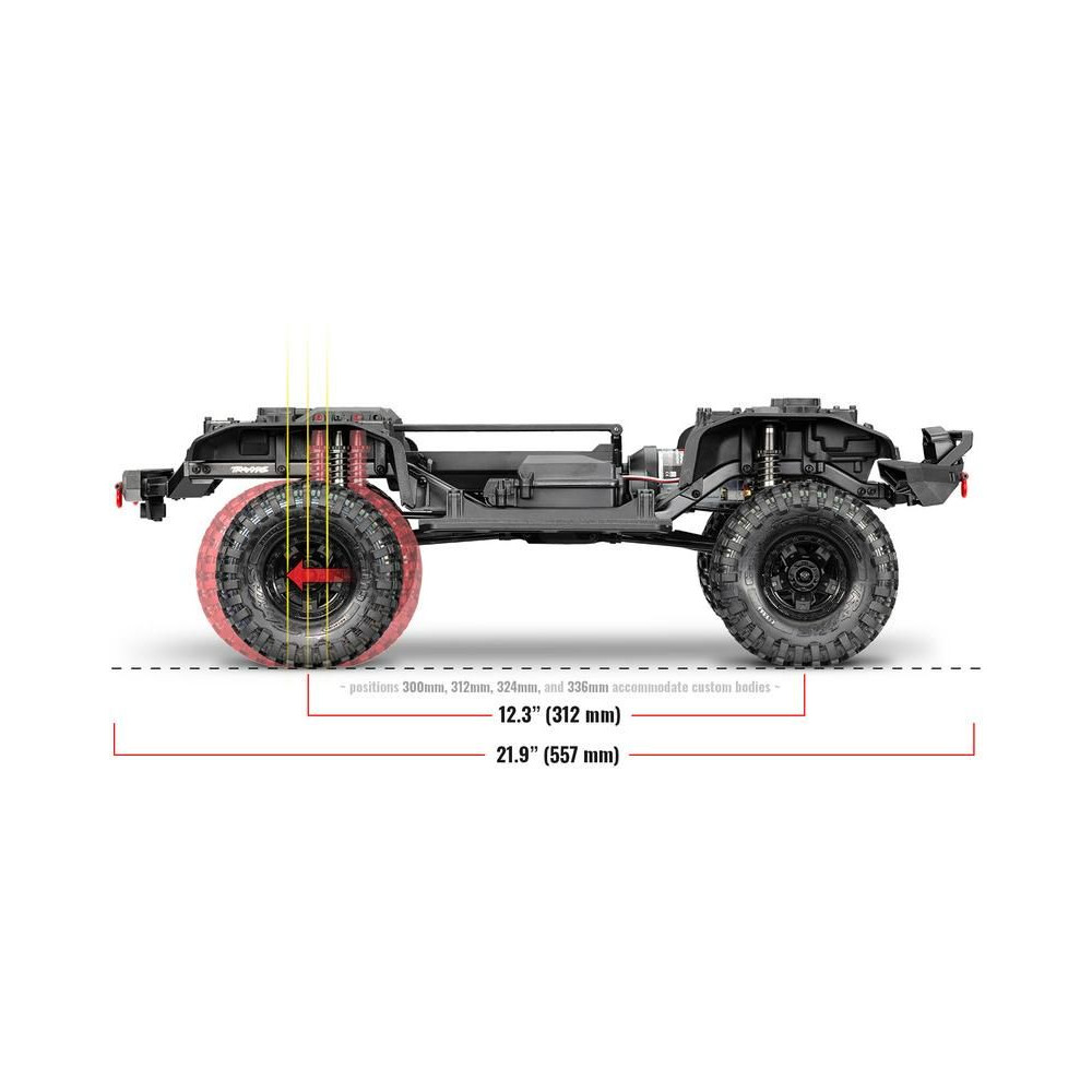 A TRX-4 alváza portáltengelyeket használ, tengelyváltóval. A tengelyhajtómű növeli a hasmagasságot, csökkenti a váltóra és a kardántengelyekre ható igénybevételt, és tovább csökkenti a torziós erőket - a modell kevésbé billen.