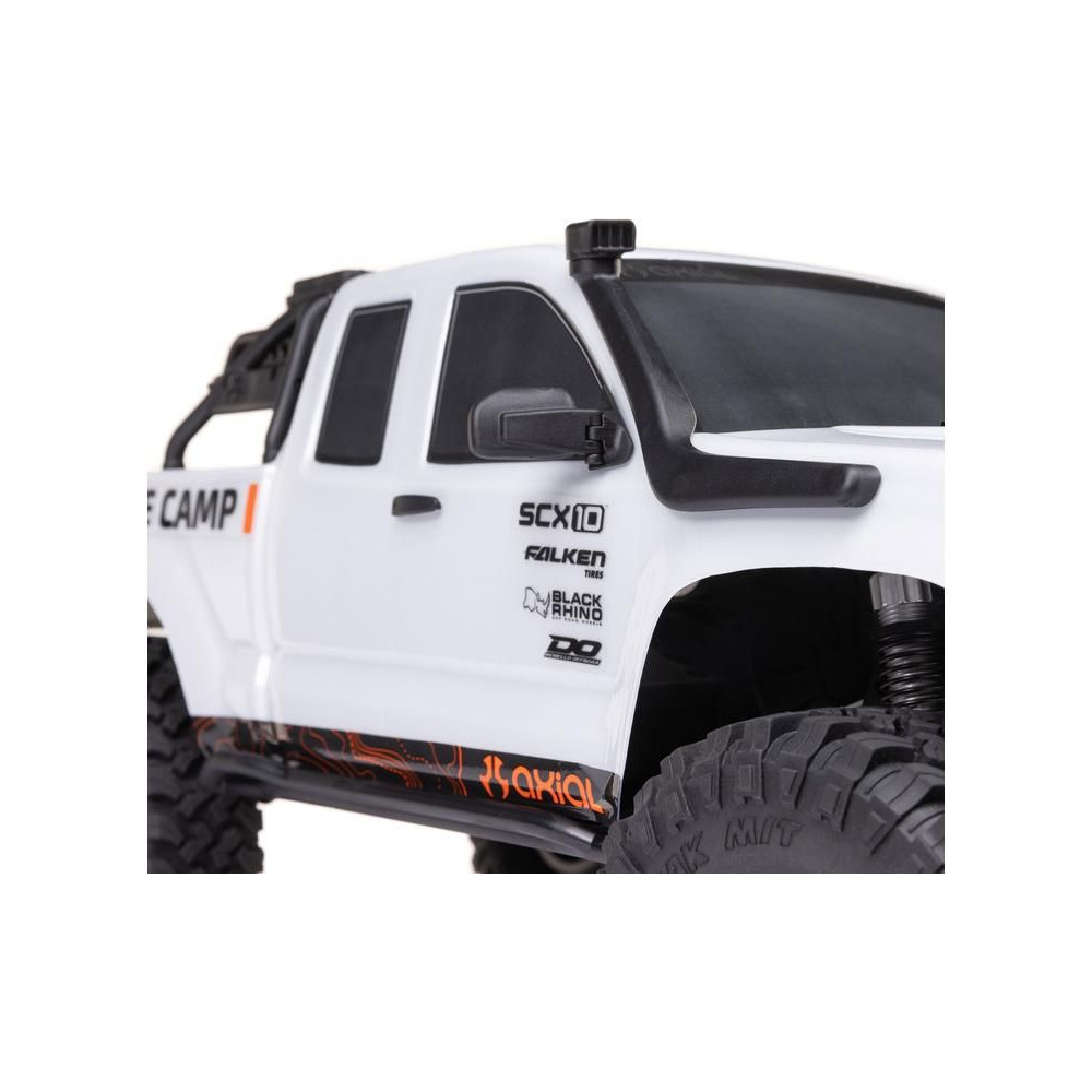 Az Axial ® SCX10 ™ III Base Camp ™ 4WD gyárilag összeszerelt, és megbízható Spektrum elektronikát tartalmaz - egy erőteljes 540-es 35T egyenáramú motort, amelyet egy 40A-es Firma szabályozó hajt. A kormánymű vízálló* szervomotorral és fém fogaskerekekkel van felszerelve. SLT3 RC készlet megbízható 2,4 GHz-es átvitellel és minden szükséges beállítással. A Base Camp mostantól számos új kiegészítőt is tartalmaz a jobb megjelenés érdekében, például egy légzőcsövet, egy kiegészítőkkel ellátott vázszerkezetet (szerszámosláda és fellépők), oldalsó tükröket és kilincseket. A modell működtetéséhez csak egy 2-3S LiPo akkumulátort kell hozzáadni EC3 vagy IC3 csatlakozóval és egy megfelelő töltőt.