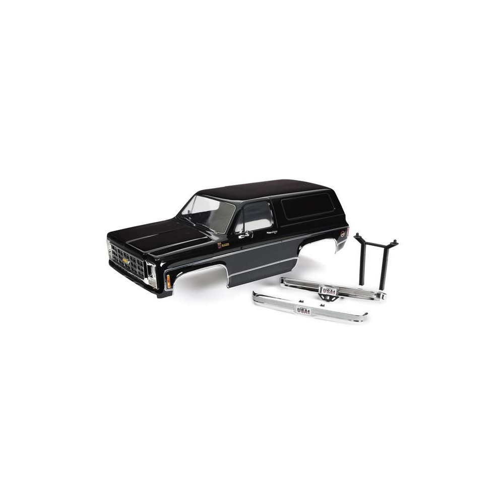 Traxxas karosszéria Chevrolet Blazer 1979 fekete, fényezésre kész, rögzítőrendszerhez. Beleértve az első hűtőrácsot, a tükröket, az ajtókilincseket, a lökhárítókat, egy matricalapot és a klipsz nélküli rögzítést. #8072X sárvédőkre való felszerelésre tervezve.