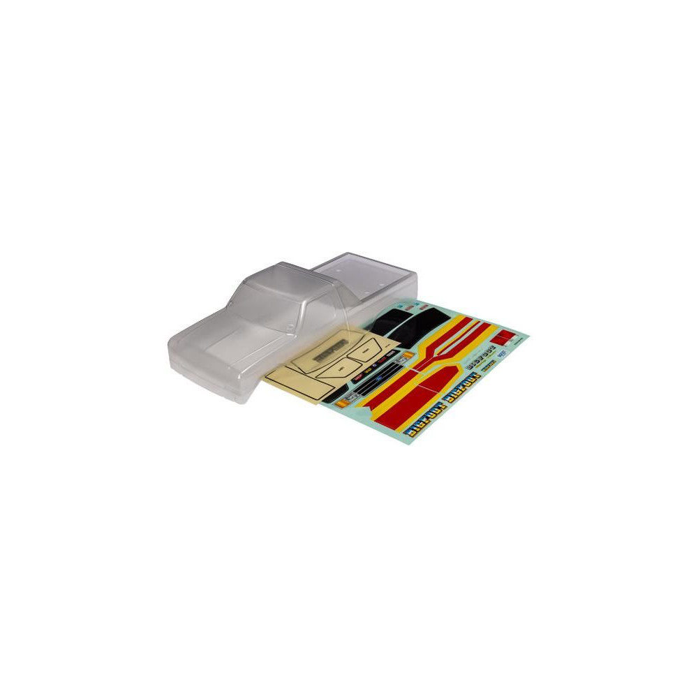 Traxxas Bigfoot No. 1 test 8 átlátszó (pattintásmentes). Festést igényel. Tartalmaz egy maszkot és egy matricaívet. Klip nélküli rögzítőrendszerhez. Alkatrész Traxxas Bigfoot 1:10 4WD RC autó modellekhez.