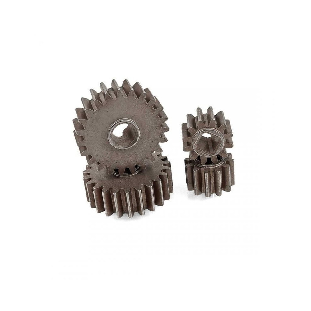 - Magában foglalja a bevált Stealth(r) X sebességváltót, amellyel a hátsó hajtás áttétele állítható. A dobozban a szokásos 5,7%-os és 11,83%-os sebességváltó opciókat kapod. A vadonatúj, nulla áttételű portáltengelyekkel kombinálva ez az optimális konfiguráció az átlagos lánctalpas targonca számára. Ha még nagyobb hátsó áttételt szeretnél, külön vásárolhatsz hozzá egy opcionális 12/23 fogú fogaskerék-készletet (#42372), amely további 36%-os alulhajtást biztosít.