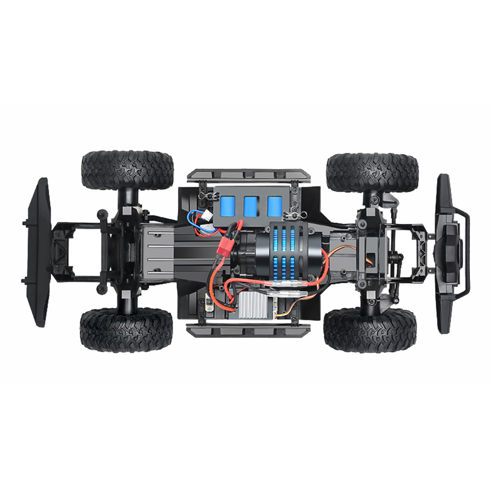 Egy SUV pickup nagyszerű megjelenését a legmodernebb funkciókkal ötvözik. Erős motorjával, 4WD összkerékhajtásával és túlméretezett gumiabroncsaival ez az 1:10 méretarányú mászó terepjáró mindig megtalálja a kiutat a vadonból.