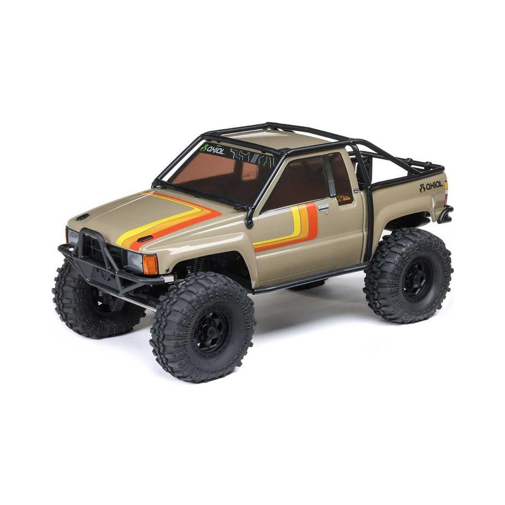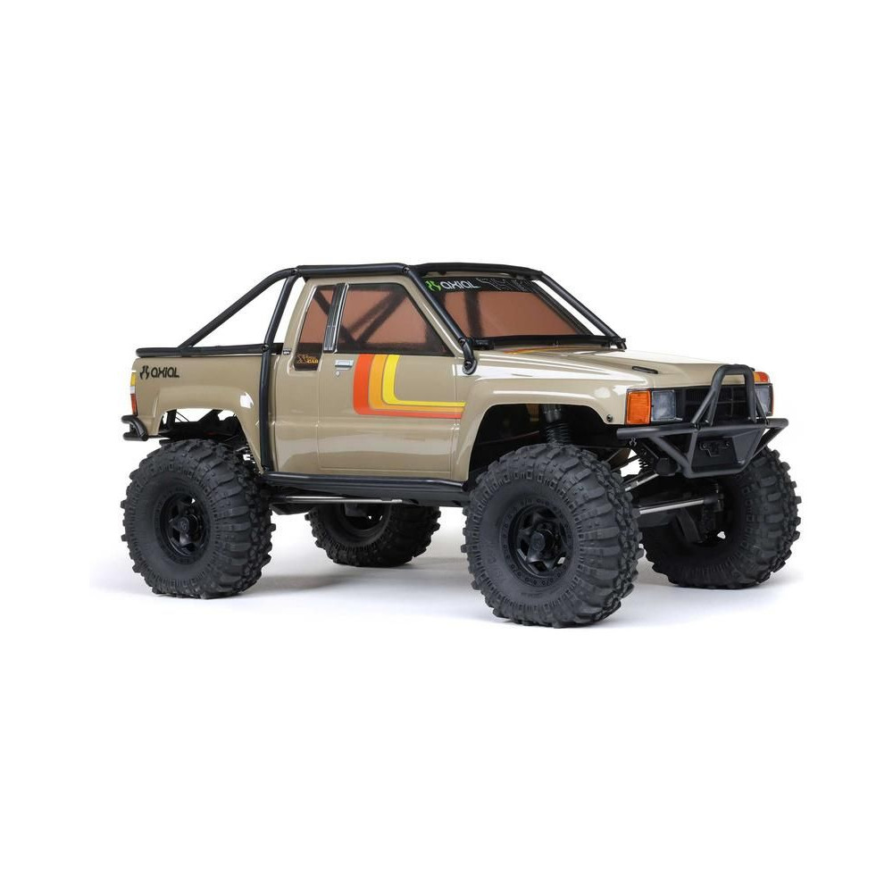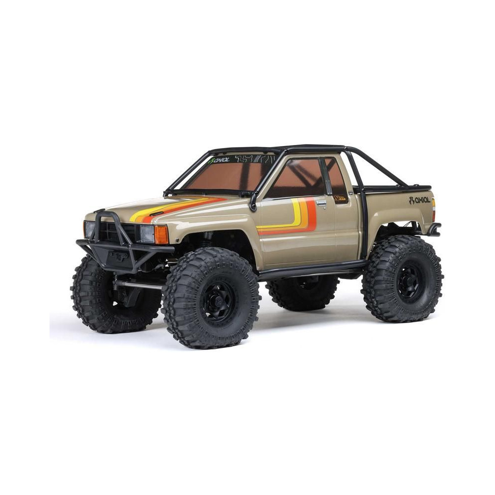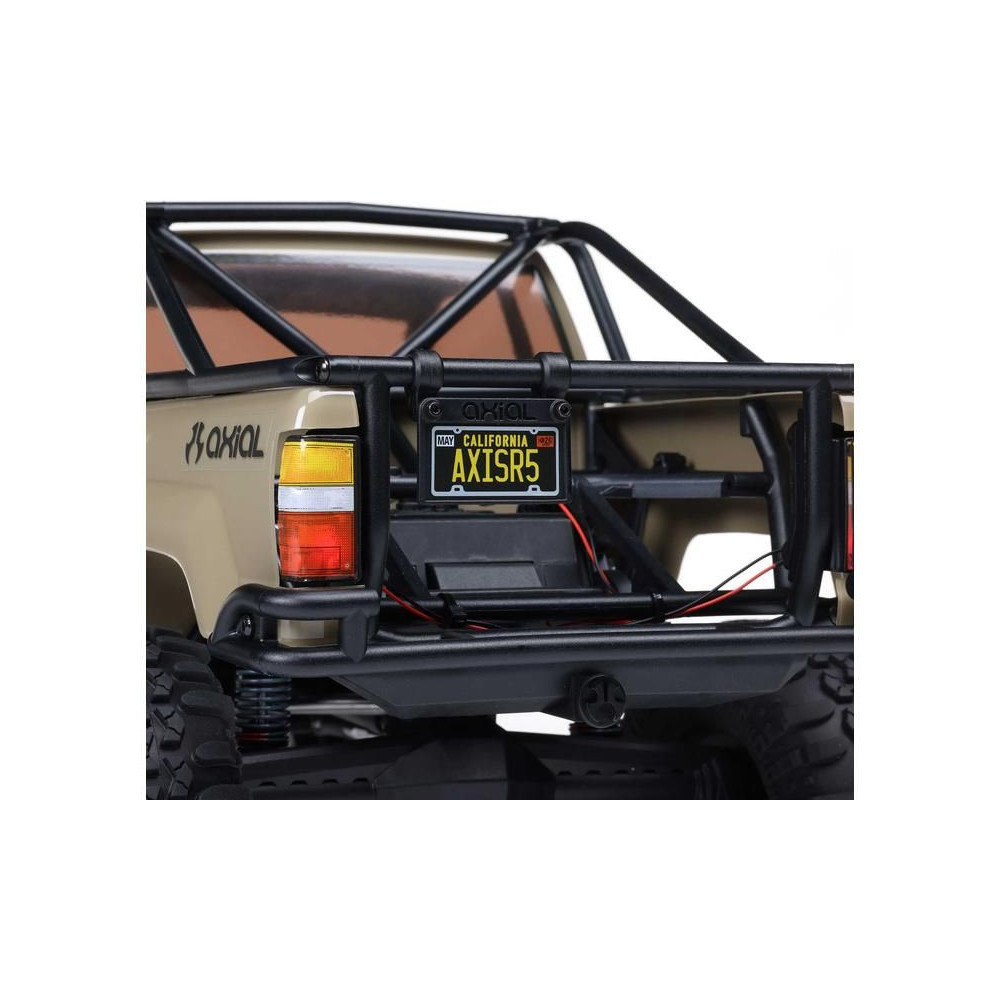 A népszerű Toyota SR5 egy ikonikus pick-up, amely meghódította az összes legendás terepjárót. Ennek köszönhetően az Axial márka ezt választotta első 1:10 méretarányú Toyota RC modelljének. Az eredeti megjelenést Trail-Gear elemekkel egészítették ki, amelyek nagyon népszerűek a terepversenyzők körében. A modell letisztult vonalait a kapocs nélküli rögzítőrendszernek köszönhetően semmilyen klipsz nem zavarja. A modellt egyenáramú motor és Spektrum 40A szabályozó hajtja. Az ötcsatornás vevőt egy háromcsatornás SLT3 adó vezérli, így ha univerzális Spektrum adóval, például DXC+-szal (külön megvásárolható) szeretnéd irányítani a modellt, akkor is maradnak szabad csatornáid további funkciók hozzáadásához. A precíz vezetéshez egy fém fogaskerekes digitális szervokormányt használnak a kormányzáshoz. A DIG funkciót szintén egy kisebb, fém fogaskerekes szervokormány vezérli.