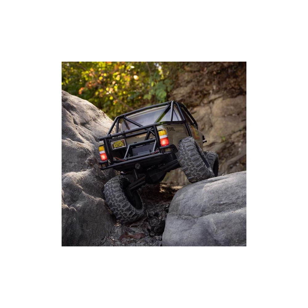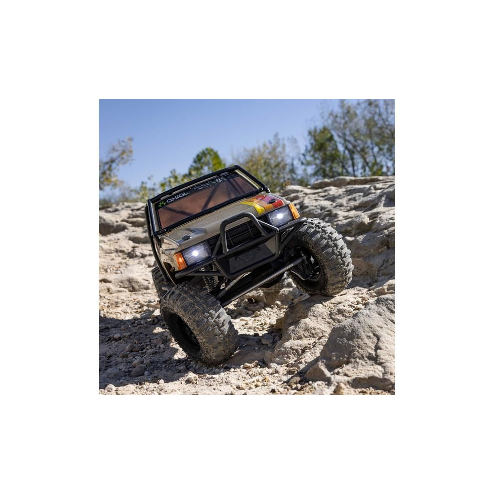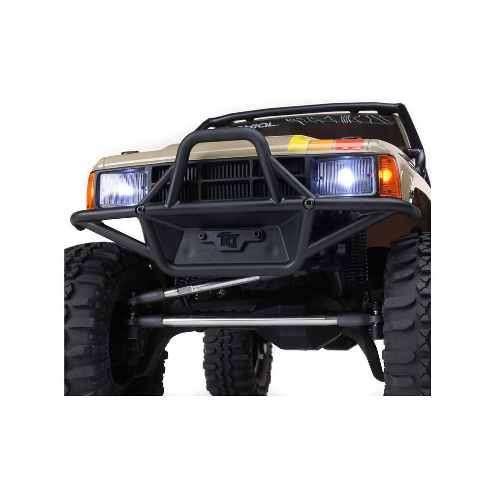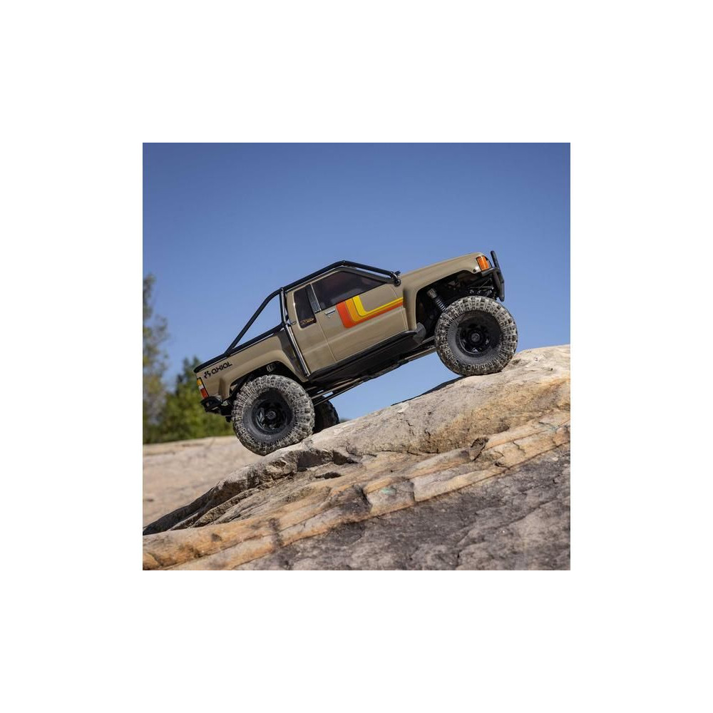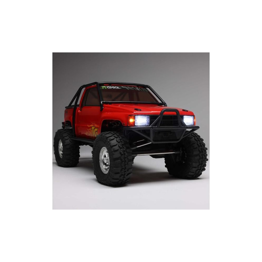 A népszerű Toyota SR5 egy ikonikus pick-up, amely meghódította az összes legendás terepjárót. Ennek köszönhetően az Axial márka ezt választotta első 1:10 méretarányú Toyota RC modelljének. Az eredeti megjelenést Trail-Gear elemekkel egészítették ki, amelyek nagyon népszerűek a terepversenyzők körében. A modell letisztult vonalait a kapocs nélküli rögzítőrendszernek köszönhetően semmilyen klipsz nem zavarja. A modellt egyenáramú motor és Spektrum 40A szabályozó hajtja. Az ötcsatornás vevőt egy háromcsatornás SLT3 adó vezérli, így ha univerzális Spektrum adóval, például DXC+-szal (külön megvásárolható) szeretnéd irányítani a modellt, akkor is maradnak szabad csatornáid további funkciók hozzáadásához. A precíz vezetéshez egy fém fogaskerekes digitális szervokormányt használnak a kormányzáshoz. A DIG funkciót szintén egy kisebb, fém fogaskerekes szervokormány vezérli.