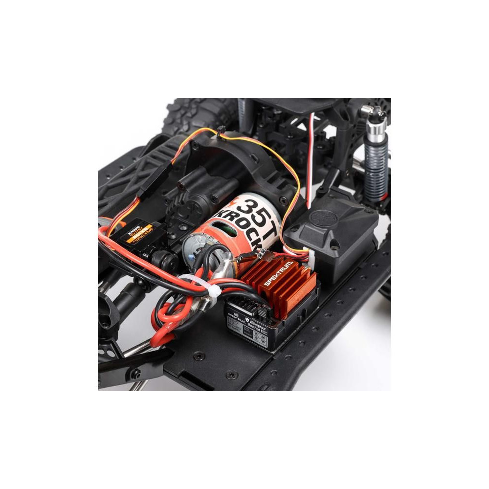 Egyszerű és megbízható elektronika található benne, vízálló* 40A-es szabályozóval, egy egyenáramú motorral, két fém fogaskerekes digitális szervóval és egy 5 csatornás vevővel, amelyhez egy 3 csatornás adó tartozik.