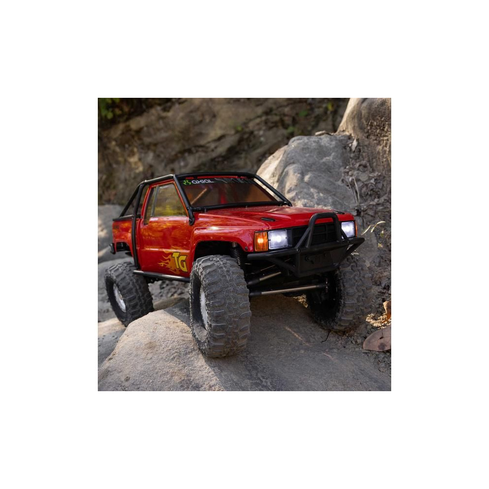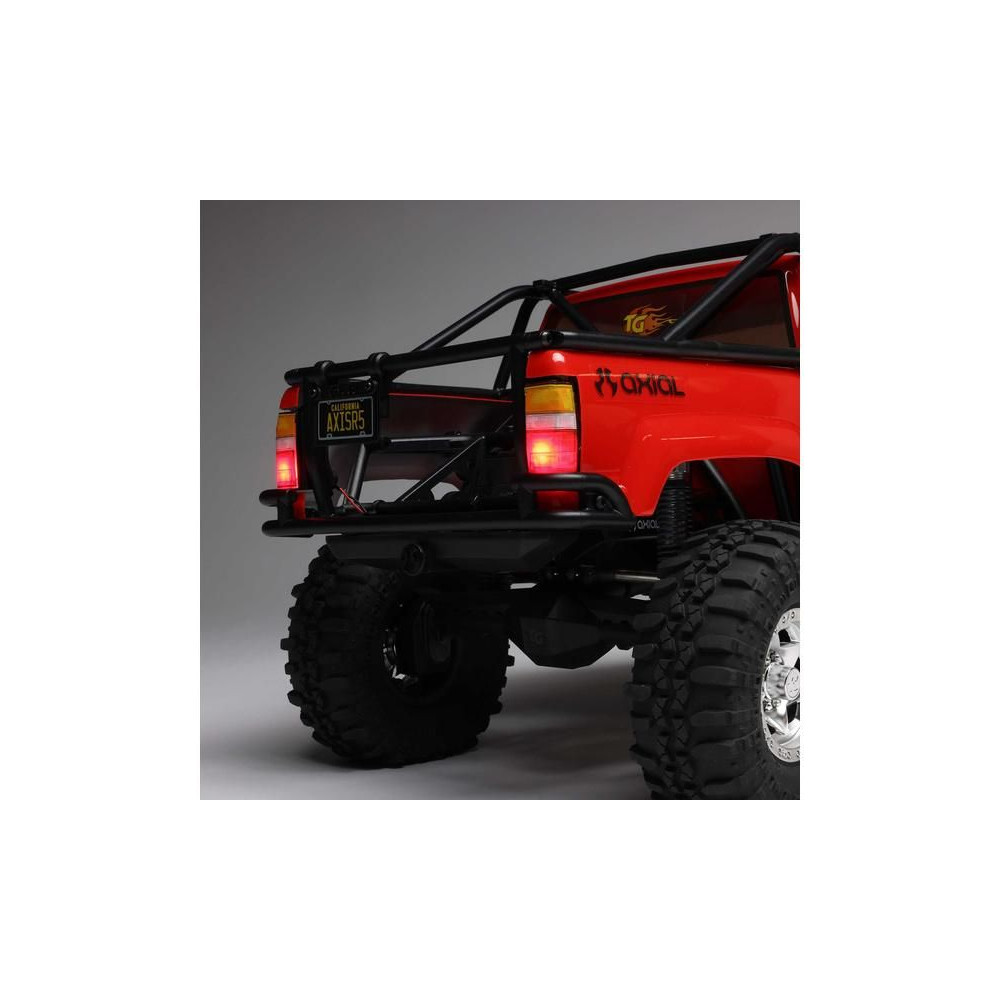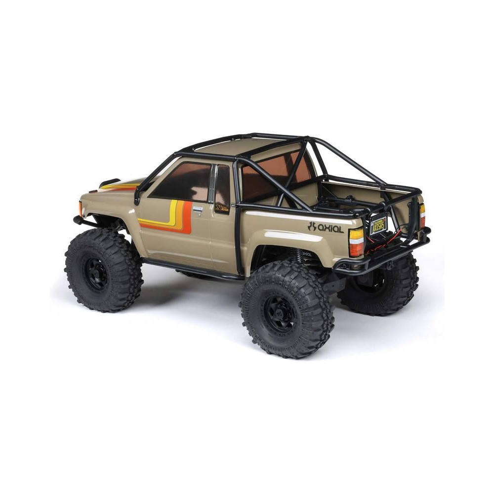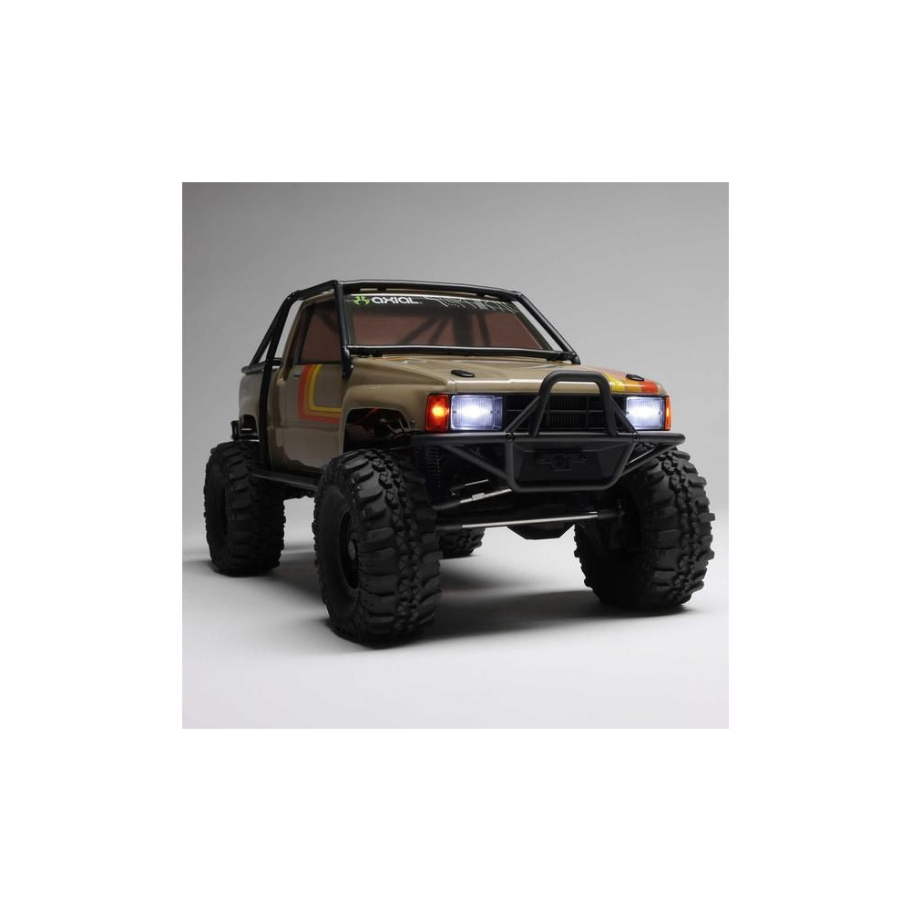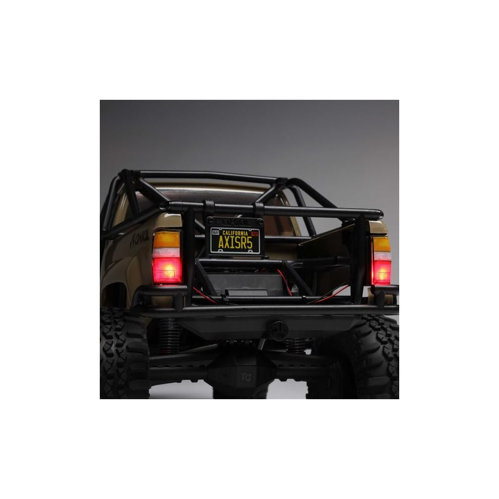 A népszerű Toyota SR5 egy ikonikus pick-up, amely meghódította az összes legendás terepjárót. Ennek köszönhetően az Axial márka ezt választotta első 1:10 méretarányú Toyota RC modelljének. Az eredeti megjelenést Trail-Gear elemekkel egészítették ki, amelyek nagyon népszerűek a terepversenyzők körében. A modell letisztult vonalait a kapcsok nélküli rögzítőrendszernek köszönhetően semmilyen kapocs nem zavarja. A modellt egyenáramú motor és Spektrum 40A szabályozó hajtja. Az ötcsatornás vevőt egy háromcsatornás SLT3 adó vezérli, így ha univerzális Spektrum adóval, például DXC+-szal (külön megvásárolható) szeretnéd irányítani a modellt, akkor is maradnak szabad csatornáid további funkciók hozzáadásához. A precíz vezetéshez egy fém fogaskerekes digitális szervokormányt használnak a kormányzáshoz. A DIG funkciót szintén egy kisebb, fém fogaskerekes szervokormány vezérli.