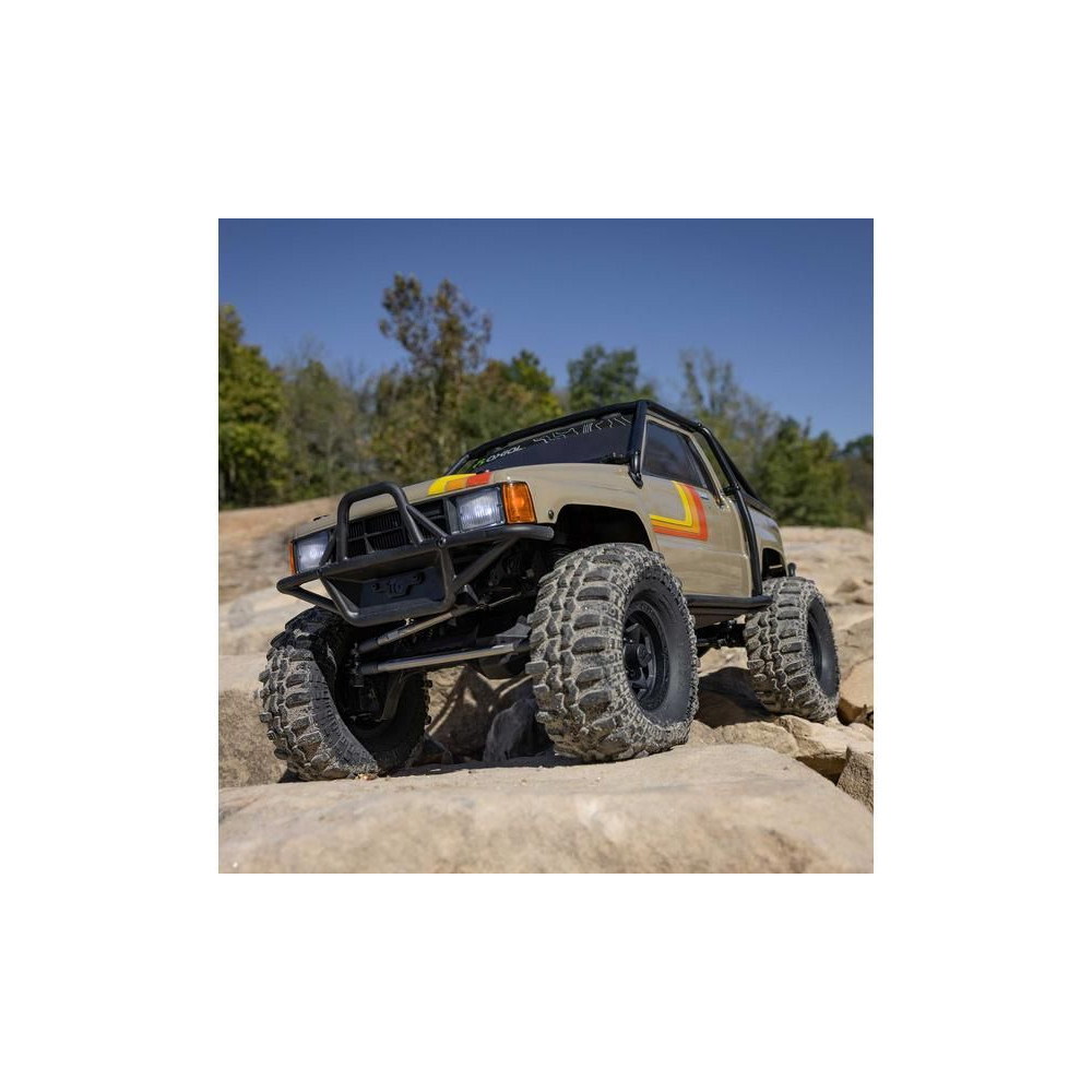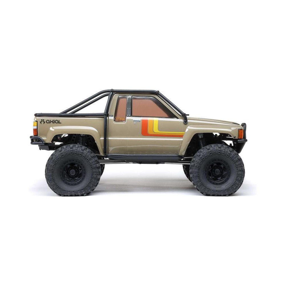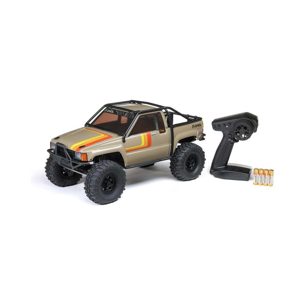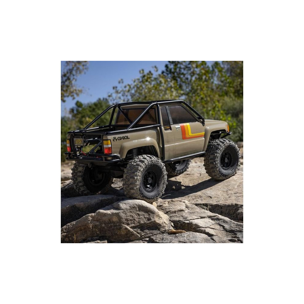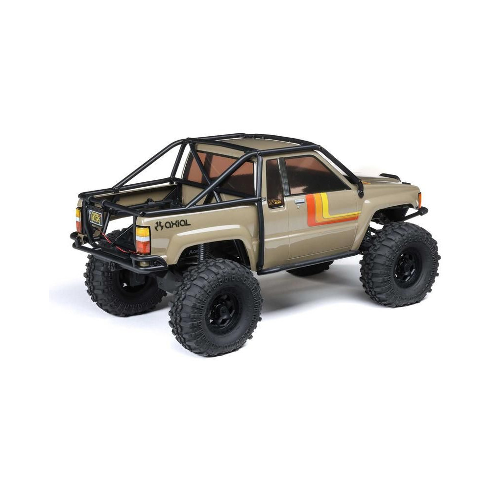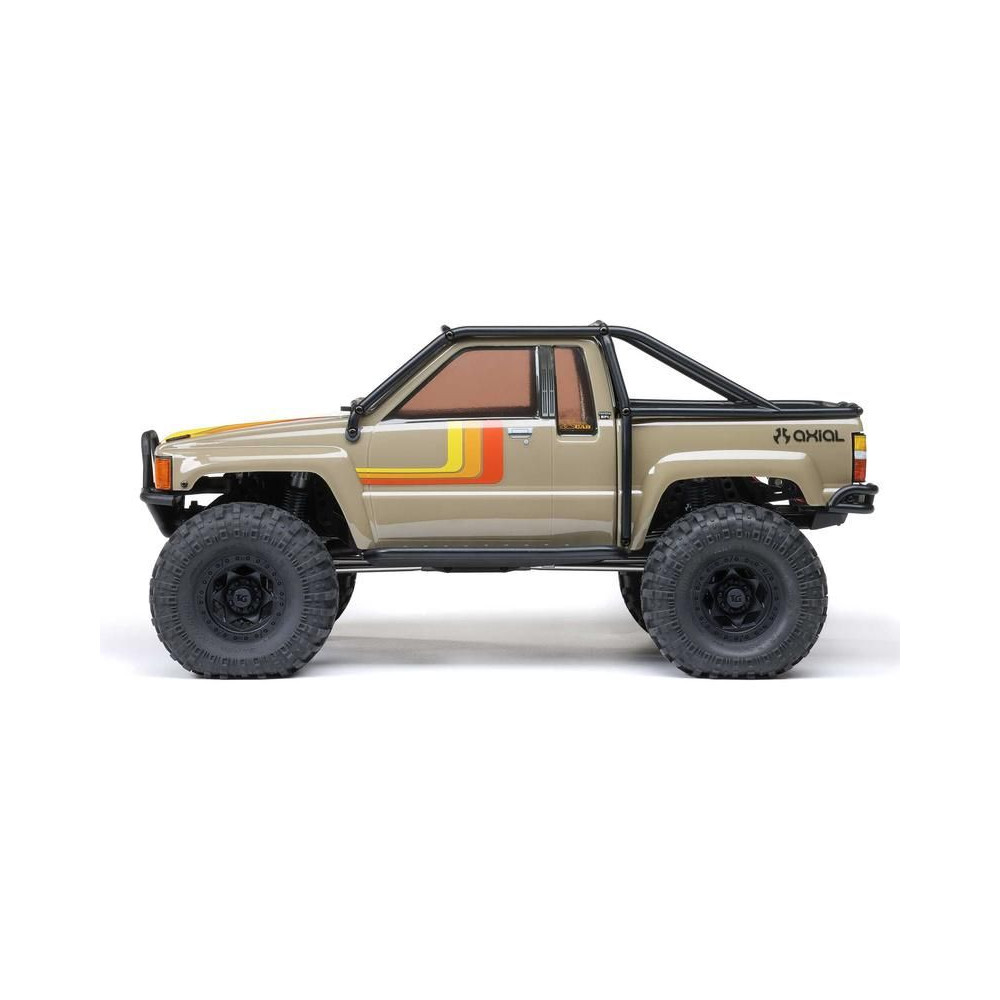 A népszerű Toyota SR5 egy ikonikus pick-up, amely meghódította az összes legendás terepjárót. Ennek köszönhetően az Axial márka ezt választotta első 1:10 méretarányú Toyota RC modelljének. Az eredeti megjelenést Trail-Gear elemekkel egészítették ki, amelyek nagyon népszerűek a terepversenyzők körében. A modell letisztult vonalait a kapcsok nélküli rögzítőrendszernek köszönhetően semmilyen kapocs nem zavarja. A modellt egyenáramú motor és Spektrum 40A szabályozó hajtja. Az ötcsatornás vevőt egy háromcsatornás SLT3 adó vezérli, így ha univerzális Spektrum adóval, például DXC+-szal (külön megvásárolható) szeretnéd irányítani a modellt, akkor is maradnak szabad csatornáid további funkciók hozzáadásához. A precíz vezetéshez egy fém fogaskerekes digitális szervokormányt használnak a kormányzáshoz. A DIG funkciót szintén egy kisebb, fém fogaskerekes szervokormány vezérli.