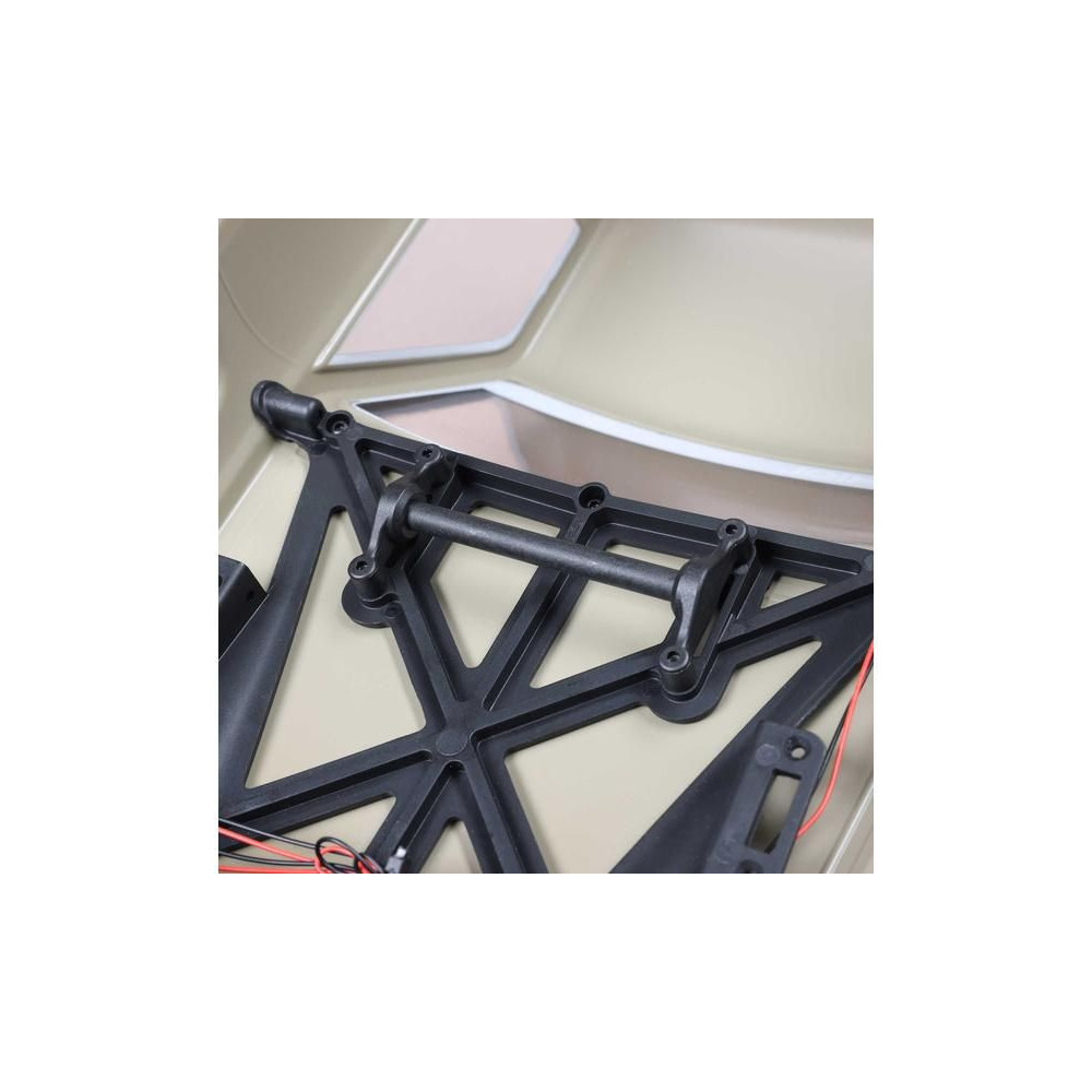 Egyszerű és megbízható elektronika található benne, vízálló* 40A-es szabályozóval, egy egyenáramú motorral, két fém fogaskerekes digitális szervóval és egy 5 csatornás vevővel, amelyhez egy 3 csatornás adó tartozik.