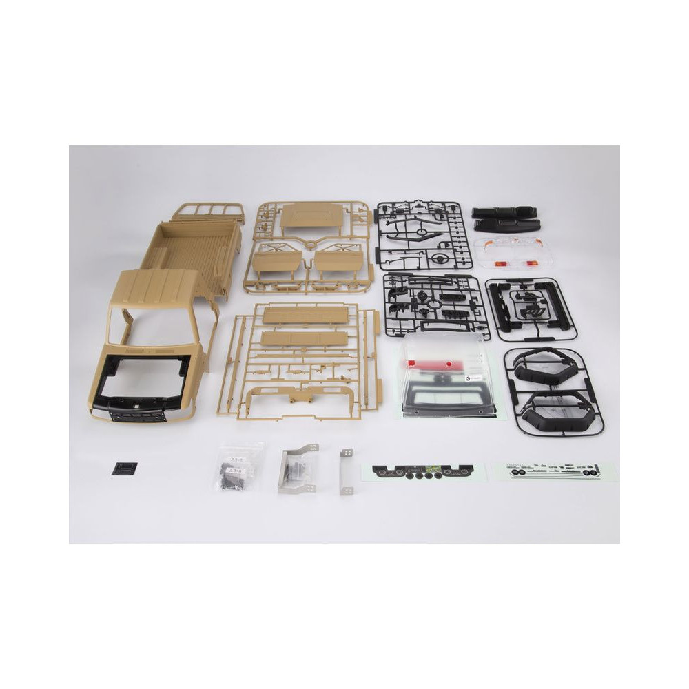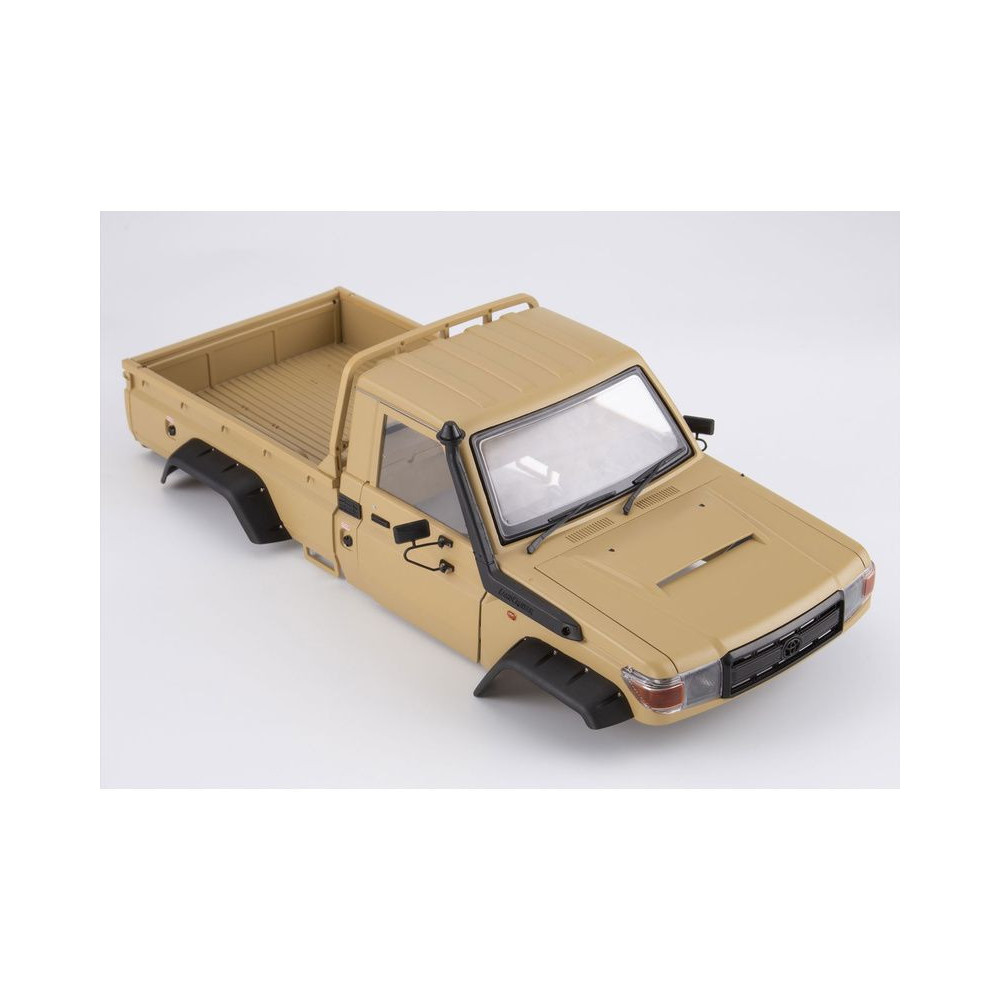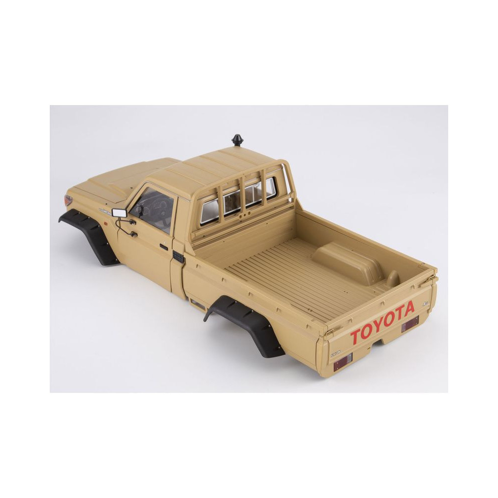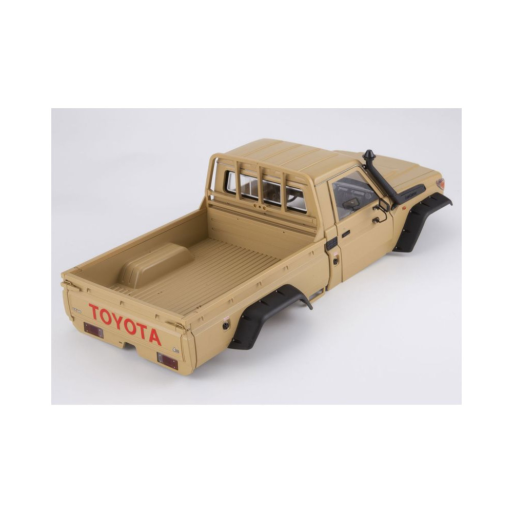 Licencelt Killerbody Toyota Land Cruiser 70 karosszéria 1:10 Traxxas TRX-4 expedíció RC autó modellekhez, homokos kivitelben. ABS anyagból készült, nagyon részletes kidolgozással, további kiegészítők felszerelésének lehetőségével.