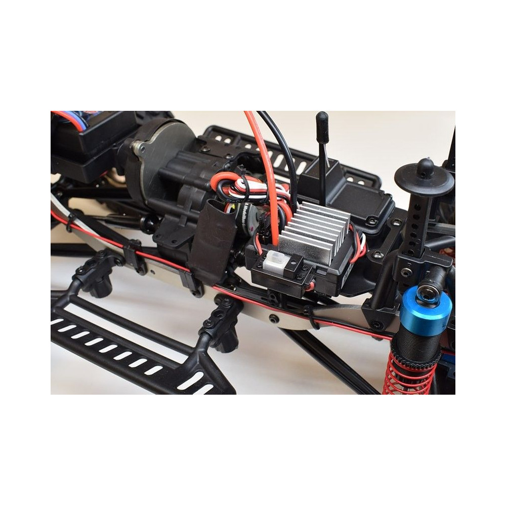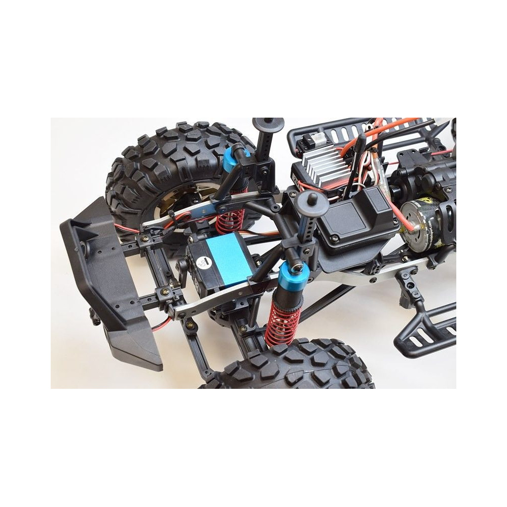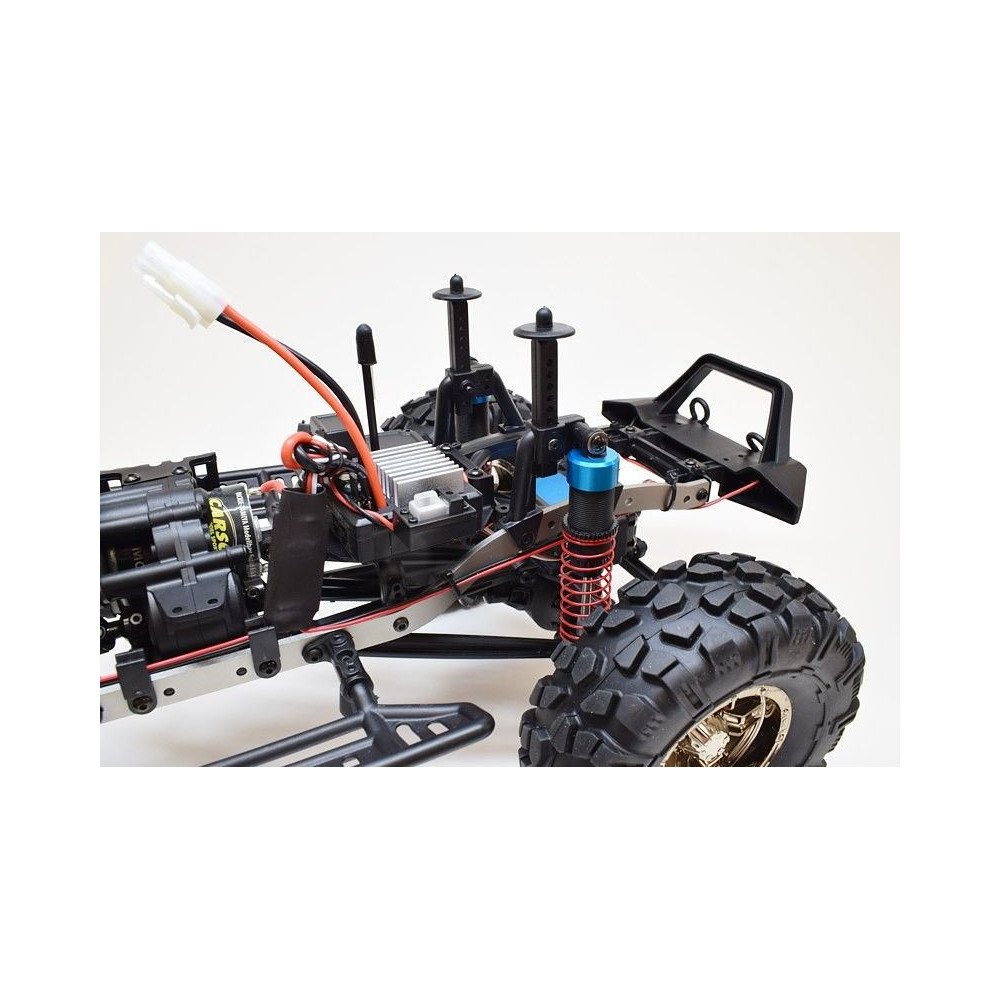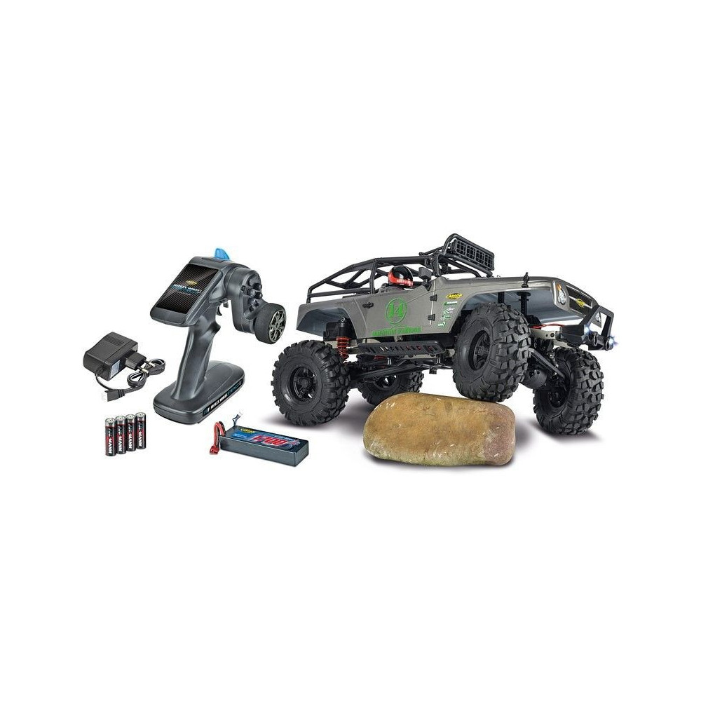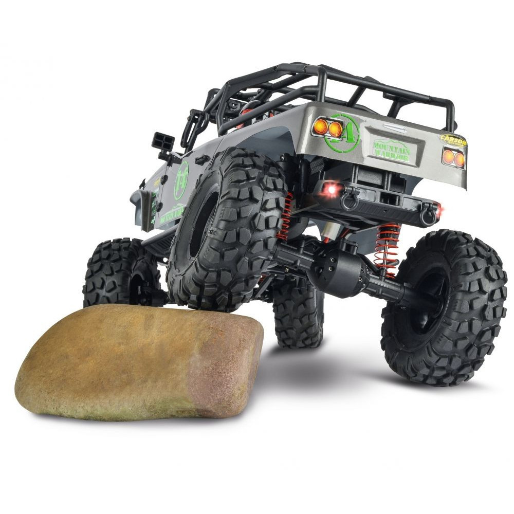 Nový CARSON MC-10 Mountain Warrior stanovuje nové štandardy a do prehľadávača pridáva ďalší špičkový model. Hliníkový rebrík slúži ako základ pre ďalšie vysoko kvalitné komponenty, ako napríklad vodotesné 9 kg servo riadenie, nastaviteľné tlmiče tlaku oleja a silný elektrický pohon. Maximálna uzamykateľná predná a zadná výkyvná náprava spolu s uzamykateľným diferenciálom a prilepenými nízkotlakovými pneumatikami s vysokou priľnavosťou zaisťujú trakciu pri používaní tvrdého crawlera. Masívne predné a zadné nárazníky s ťažnými konzolami obklopujú jednotky LED a dávajú Mountain Warrior v spojení s bočnými ochrannými krytmi a klietkovou mriežkou masívny a robustný vzhľad v skúšobnom parkoure. Údené chrómované disky s vysokým leskom a pripravené výstrely pre osvetlenie spodnej časti vozidla, ako aj strešné svetlomety, ktoré je možné dodatočne vybaviť LED diódami, premieňajú terénneho pretekára na ukážkové vozidlo špeciálneho druhu. Vo variante 100% RTR je horský bojovník pripravený na použitie už po niekoľkých minútach nabíjania hnacej batérie. Vychutnajte si tvrdý terén s horským bojovníkom MC-10 od CARSON-Modellsport.