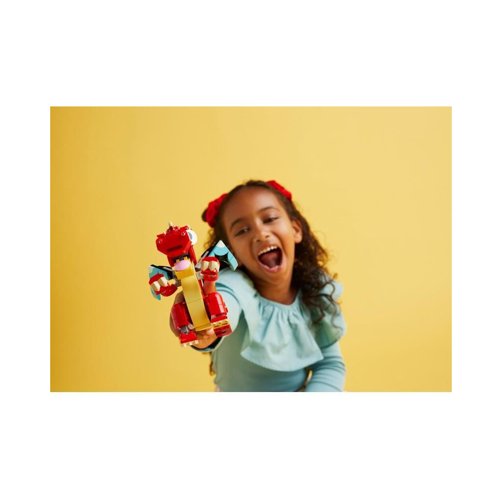 A gyerekek a LEGO® Creator 3 az 1-ben Vörös Sárkánnyal egy varázslatos birodalomban kalandozhatnak, és a mitikus lényt főnixszé vagy hallá alakíthatják át.