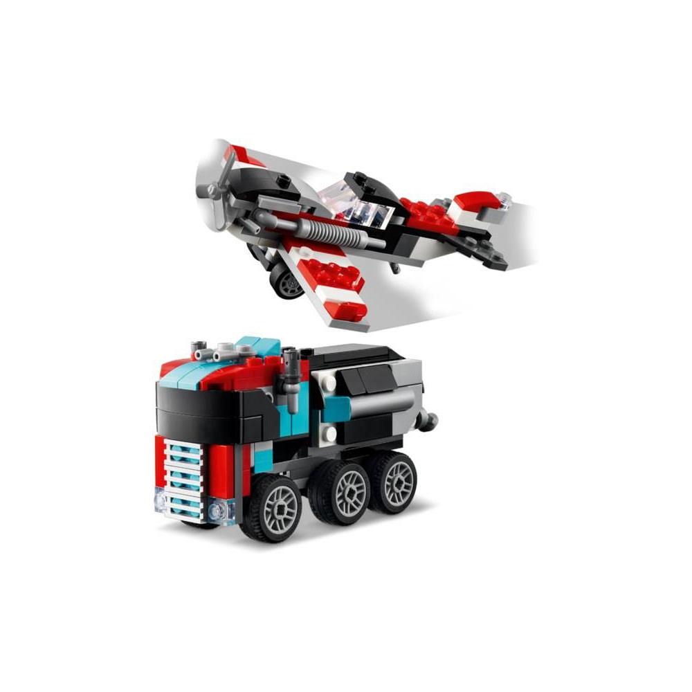 Ezzel a LEGO® Creator 3 az 1-ben készlettel a kis építők 3 különböző modellpárt állíthatnak össze. Először például egy platós teherautót és egy helikoptert építenek, majd a modelleket propelleres repülőgéppé és forgó kerekű üzemanyagkamionná alakítják át, végül pedig hot rod modellekkel és terepjárókkal versenyeznek - vagy saját, eredeti járműveket építenek.
