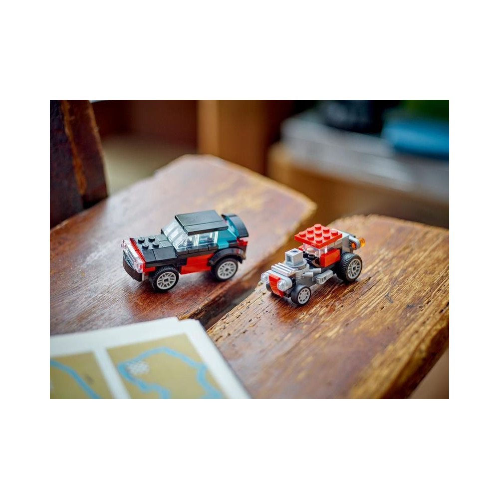 - Végtelen játéklehetőségek - A gyerekek akciódús versenyekre indulhatnak 3 járműpárral: egy platós teherautóval és helikopterrel, egy propelleres repülővel és üzemanyagkocsival, valamint egy hot roddal és terepjáróval LEGO® téglákból.