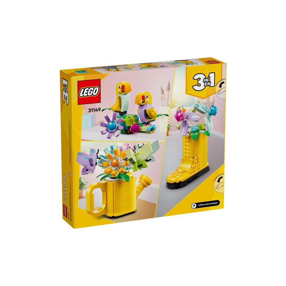 A LEGO® Creator 3 az 1-ben (31149) Virágok a konvojban játék után a gyerekek 3, a természet által inspirált tematikus modellt állíthatnak össze és mutathatnak be. Építs a téglákból egy sárga öntözőkannát fogantyúval és kifolyóval. A belsejében 3 virág található mozgó szirmokkal és 3 pillangó, amelyek átlátszó pálcikákra vannak erősítve, és úgy néznek ki, mintha repülnének.