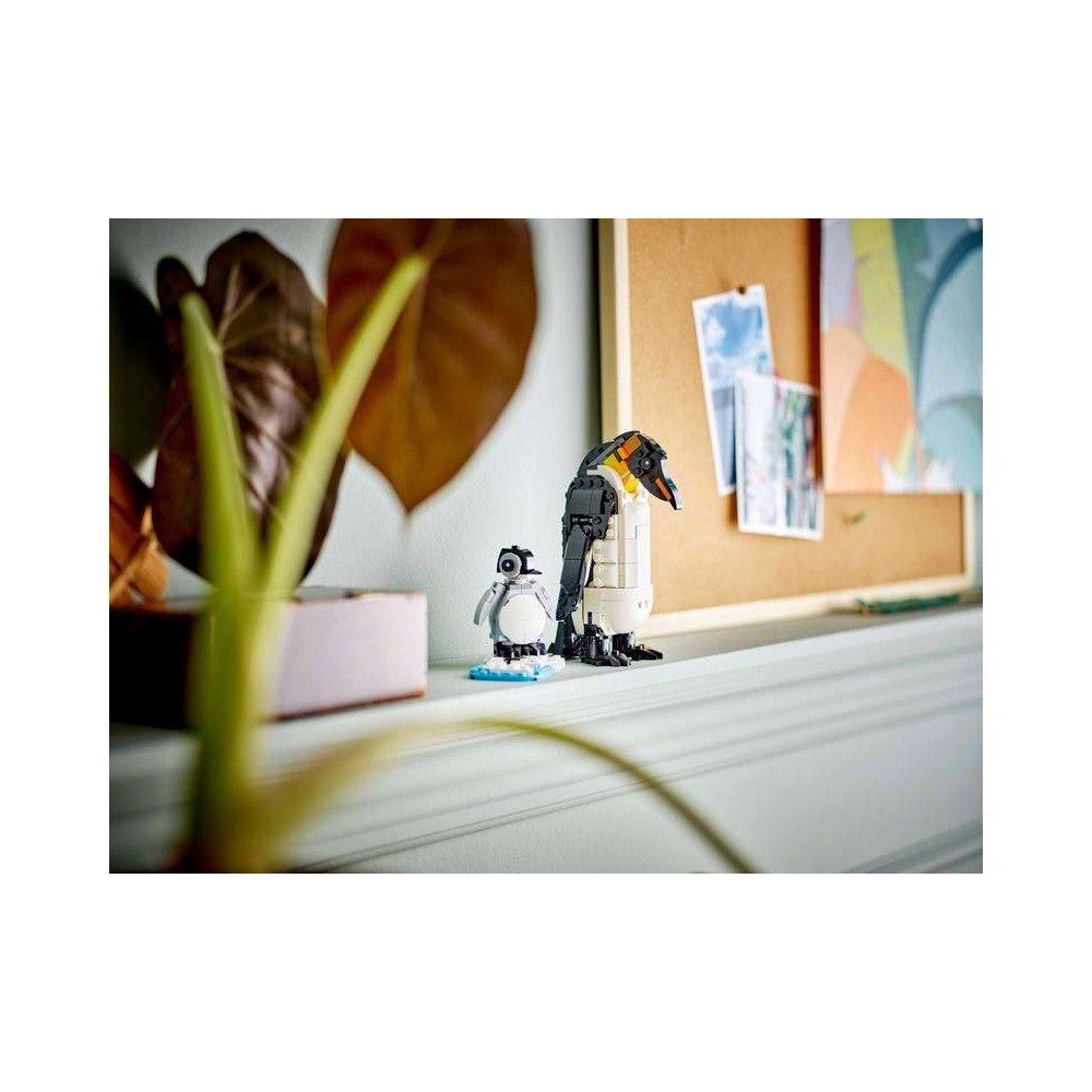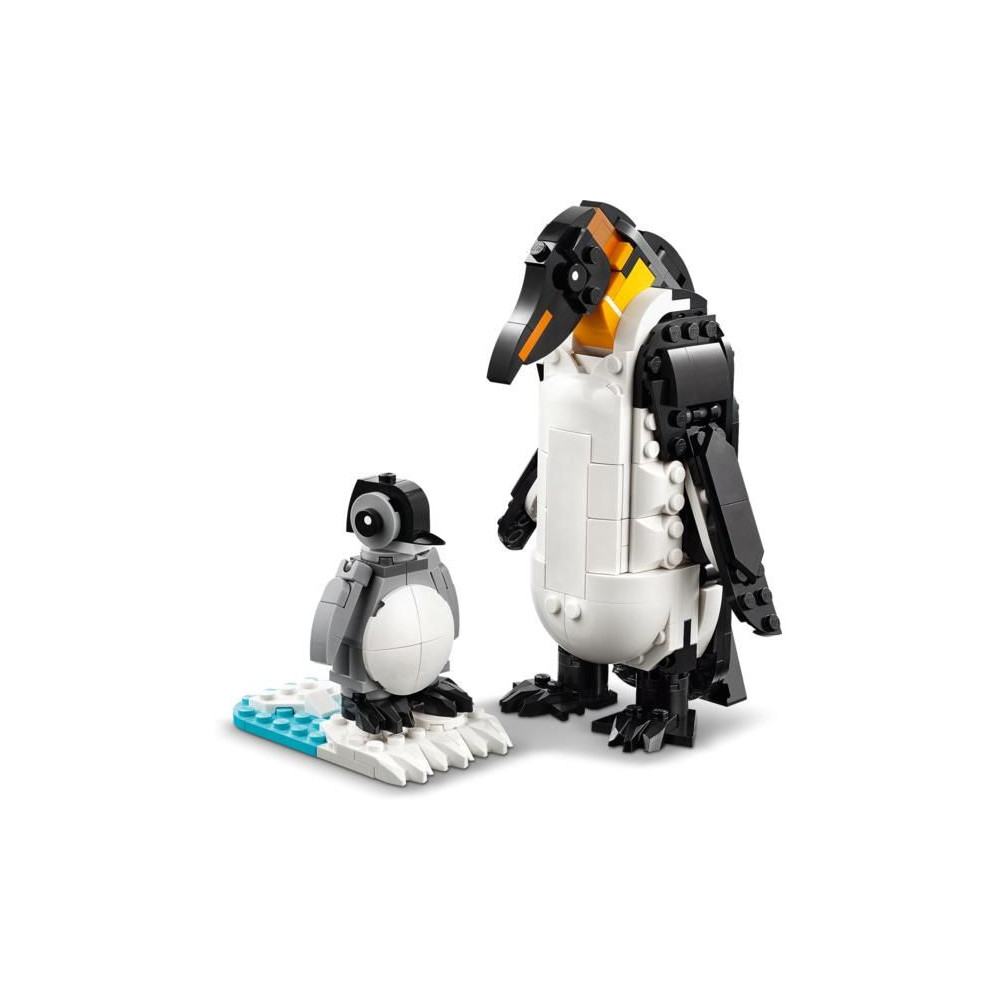 A gyerekek 3 különböző LEGO® állatmodellt építhetnek ugyanabból a kockákból: egy mozgatható pandafigurát egy boccsal és bambuszrügyekkel, egy mozgatható kardszárnyú delfinfigurát egy boccsal, amelyeket együtt állíthatnak ki átlátszó állványokon, vagy egy mozgatható pingvint egy boccsal egy darab jégen és vízen. Mindhárom modell nagyszerű LEGO ajándék gyermekeknek kreatív játékhoz és kiállításhoz.