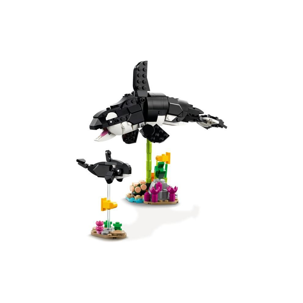 - Játékra és kiállításra alkalmas modellek – Amikor a gyerekek befejezték a játékot, LEGO® állatfiguráikat kiállíthatják egy polcon vagy éjjeliszekrényen a 2 átlátszó állványnak köszönhetően, amelyeken a gyilkos bálnák családja is kiállítható.