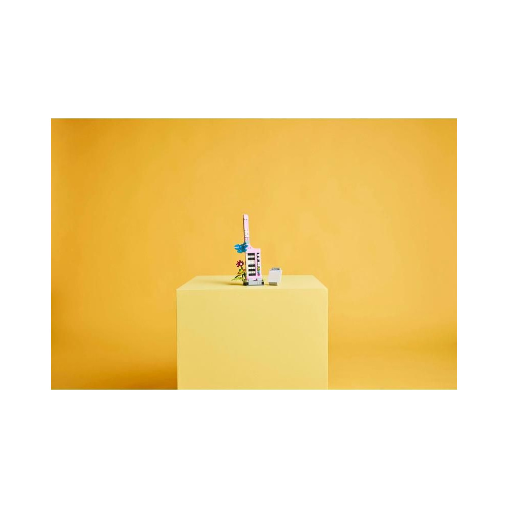 A LEGO rajongók 3 különböző virágkészlet közül választhatnak: építsenek írógépet virágokkal; keytar egy állványon virágokkal vagy egy virágcserép tollal és jegyzetfüzettel. Az újjáépíthető készlet 3 matricát is tartalmaz kedves feliratokkal, amelyekkel a gyerekek díszíthetik a kocka modelleket.