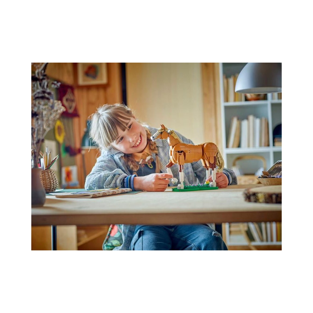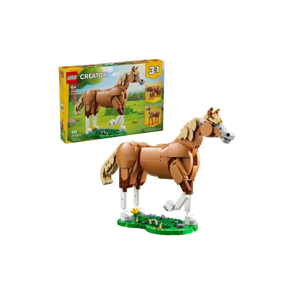 A LEGO® Creator 3 az 1-ben Gyönyörű ló készlet lehetővé teszi a 9 éves kortól kezdődő gyermekek számára, hogy 3 különböző állatfigurát alkossanak ugyanazokból a kockákból.
