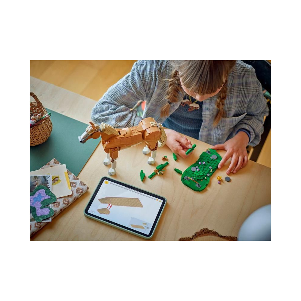 A 9 éves vagy annál idősebb, állatokat szerető lányok és fiúk órákig tartó szórakoztató történeteket élvezhetnek a Gyönyörű Ló (31166) építőkészlettel. Ez a mozgatható ló képes mozgatni a fejét, nyakát, csípőjét, patáit, farkát és egyik térdét, és egy fűhatású szőnyegen helyezkedik el, amelyen a gyerekek 3 különböző pozícióban állíthatják ki: 3 vagy 4 lábon állva, vagy 2 hátsó lábon.