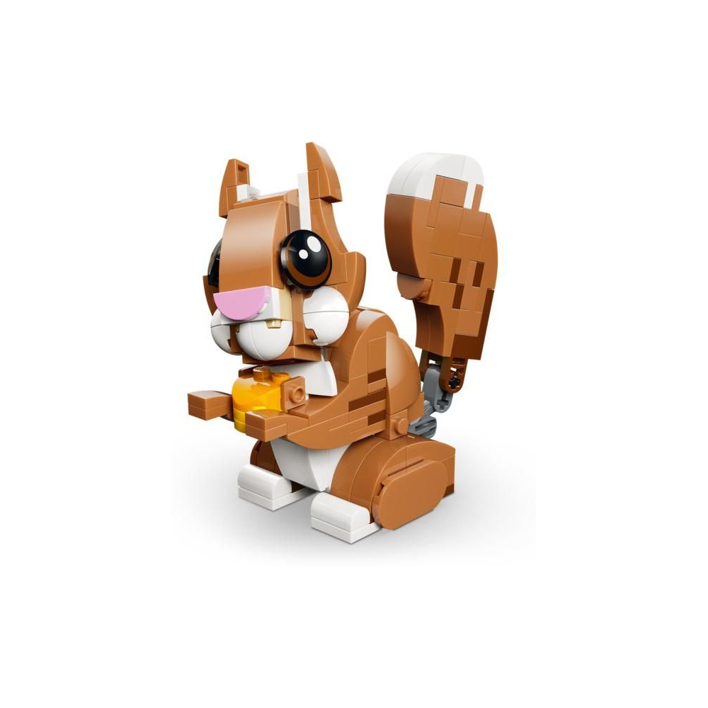 - LEGO® MOZGÓ ÁLLATOK - A kutyafigura feje, fülei, lábai, farka, szemöldöke és szája állítható, a mókus farka és feje állítható, a kacsa feje pedig állítható.