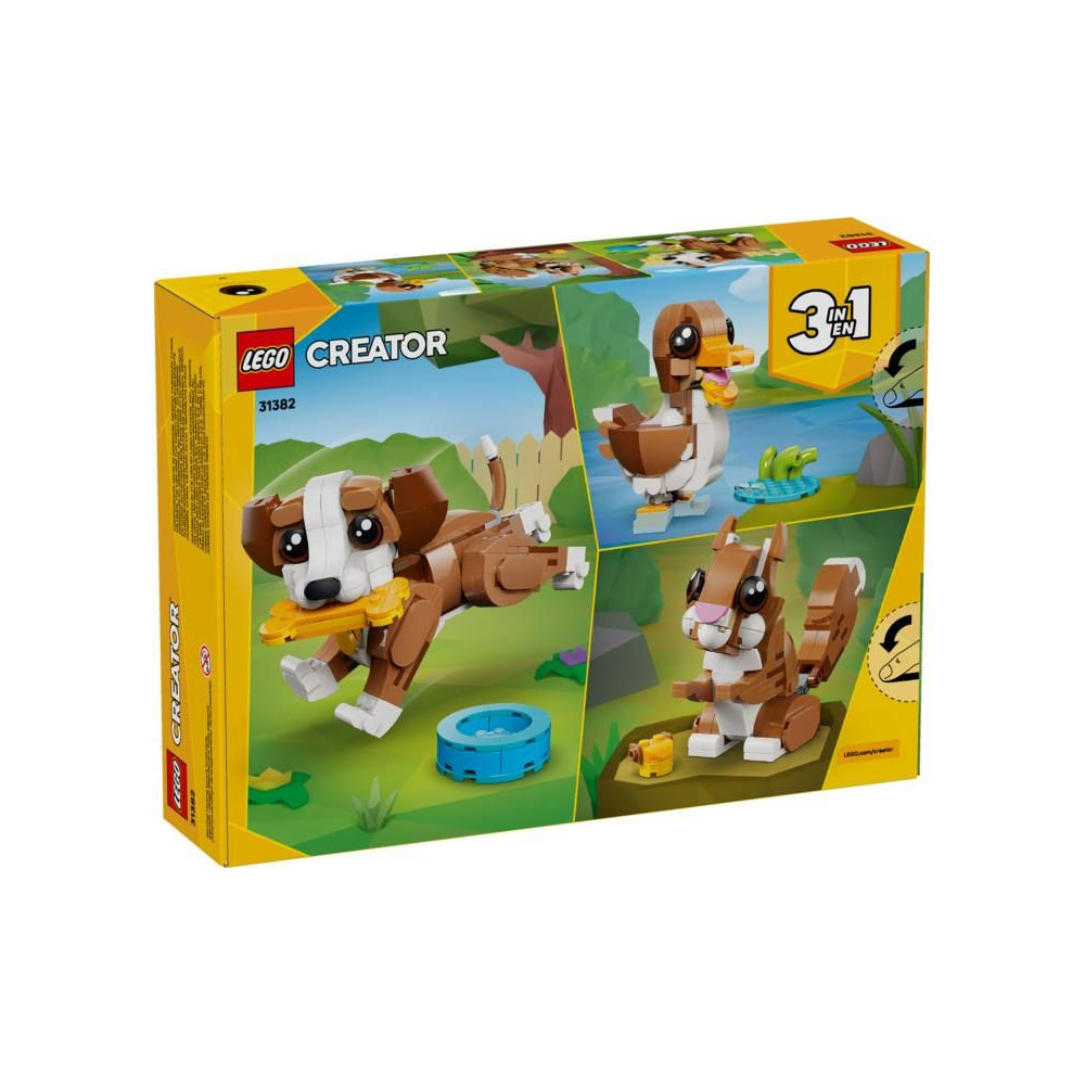 - 3 AZ 1-BEN ÁLLATOS JÁTÉK - A LEGO® Creator 3 az 1-ben Aranyos állatok: Aranyos kiskutya (31382) készlettel a 8 éves kortól a lányok és fiúk 3 állatfigurát építhetnek és rendezhetnek át ugyanabból a kockákból.