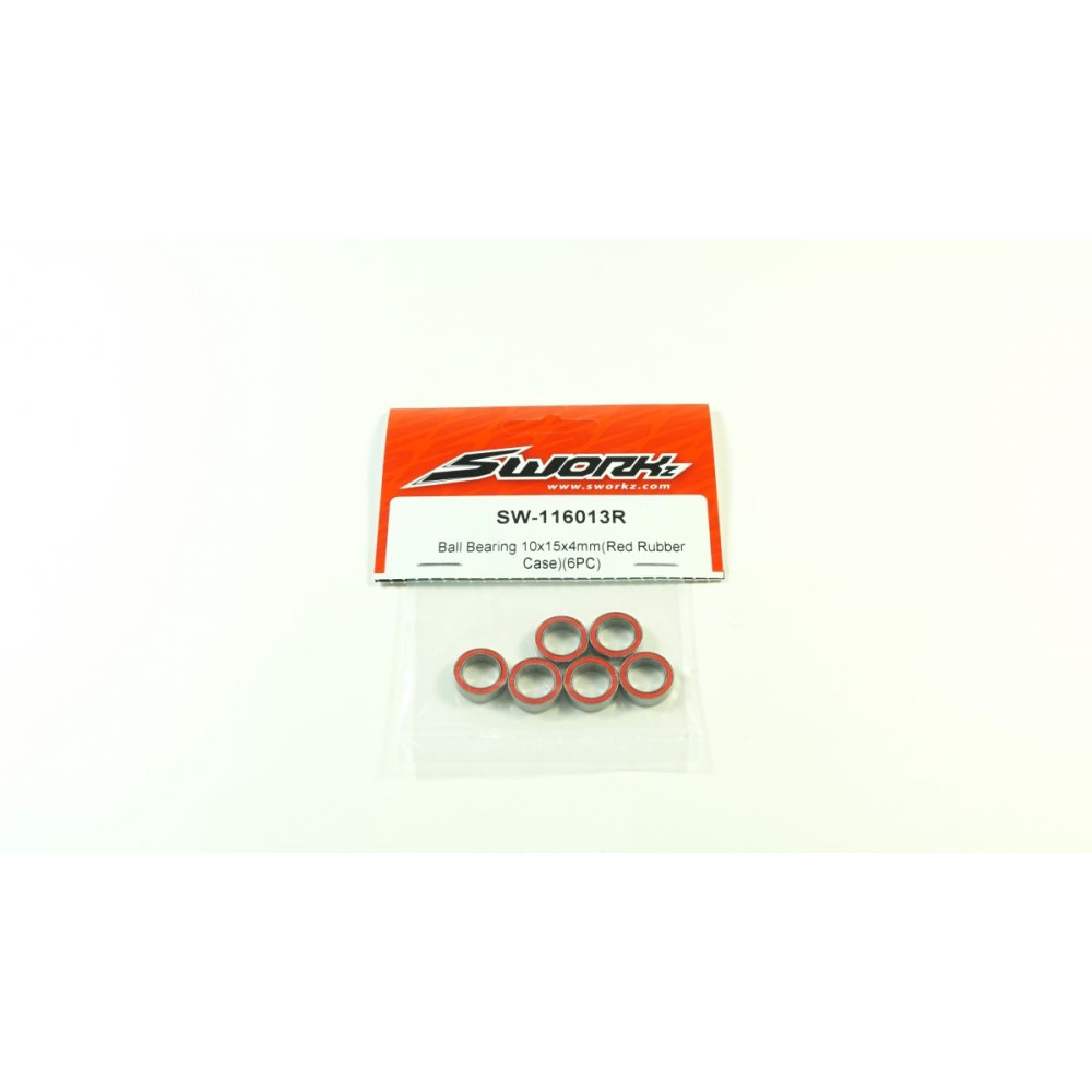 SWORKz golyóscsapágy piros gumis porvédővel 10x15x4mm, 6db