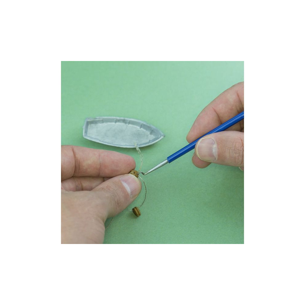 A Modelcraft 2 darabos, acélvégű mini kampókészlete ideális a kötélzet rögzítéséhez a hajóépítésben, kis alkatrészek rögzítéséhez, a felesleges anyag lekaparásához, hajlításhoz és csavaráshoz, vagy egyszerűen az alkatrészekbe való behelyezéshez, elektronikai munkákhoz vagy forrasztáshoz.