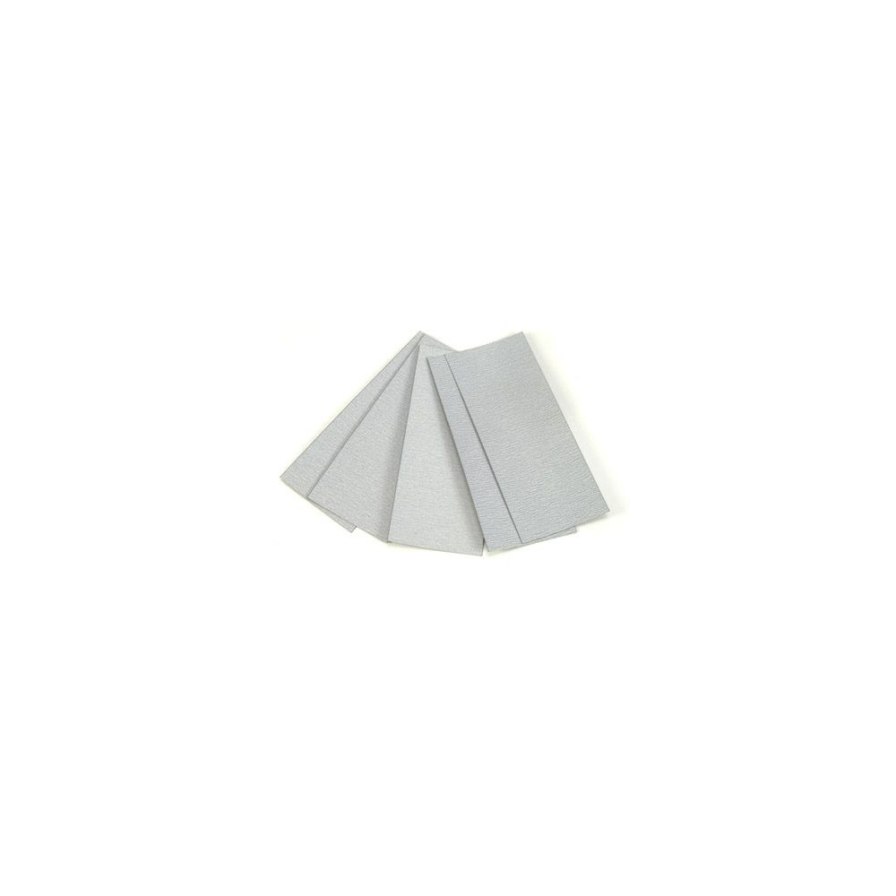 ★ Brúsne materiály na dokončovanie sú pre modelárov kľúčovou položkou - od čistenia spojovacích línií po vypilovanie tmelu alebo prípravu povrchu na konečnú povrchovú úpravu, ich použitie je nespočetné. ★ Materiál použitý na týchto listoch zabraňuje gumovaniu povrchu. Možno ho použiť na mokré alebo suché brúsenie. Obsahuje dva listy P180, jeden P240 a dva listy P320.