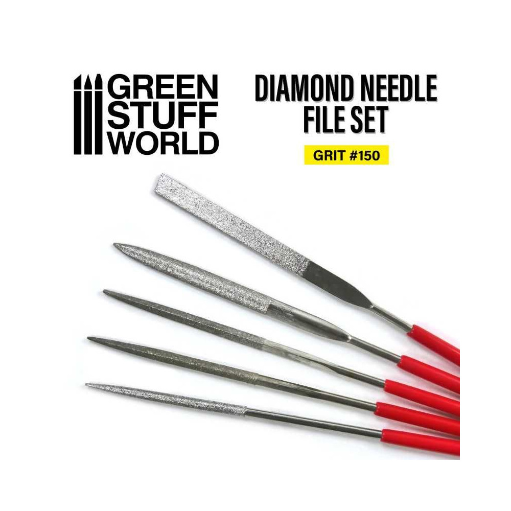 Táto sada diamantových pilníkov má zrno č. 150 vo všetkých nástrojoch, takže sú ideálne na čistenie plastových, kovových a živicových miniatúr bez poškodenia detailov.