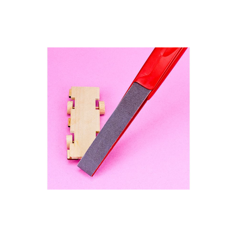 Modelcraft csiszolószerszám rugóval 25 mm széles szalaghoz. Közepes szemcseméretű szalagot tartalmaz. A hátul megfeszített rugó a helyén tartja a szalagot a könnyű csiszolás érdekében. Hossza 255 mm, szélessége 25/35 mm, súlya 80 g, magassága 30 mm. Felületcsiszoláshoz alkalmas.