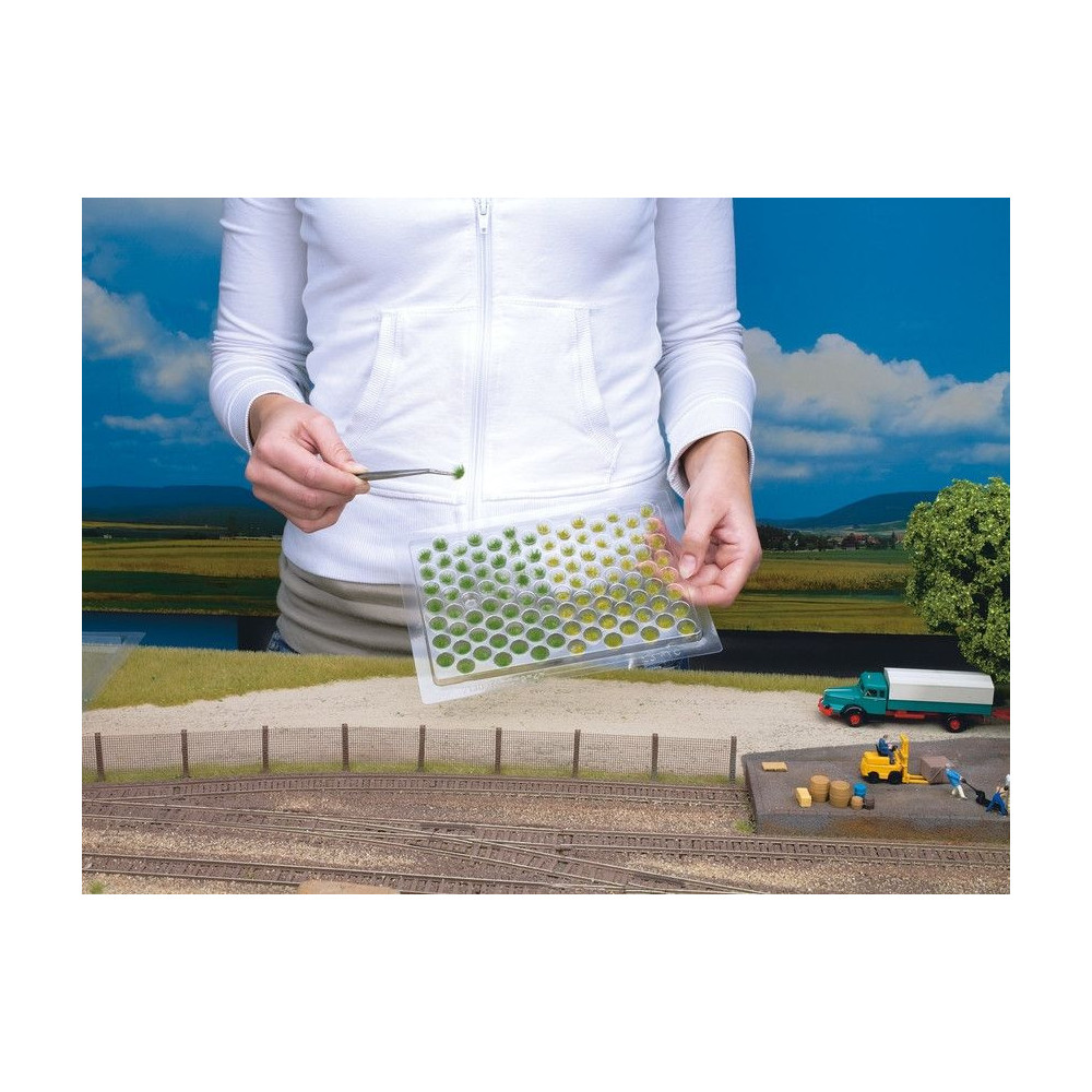 Tegye zöldebbé a tájat ... A népszerű Night Grass Tufts segítségével tökéletesen díszítheti nem földutakat, tavakat vagy folyópartokat, padkákat és lejtőket, valamint az utak és erdők széleit. Mindemellett virágágyások kialakítására vagy rétek megvilágítására is ideálisak. Az új Grass Tufts Mini szettek ideálisak kisebb területek díszítésére, vagy ha úgy tetszik, különböző fűfélék kombinálására. A nagy csomagok mellett a Mini készletek tartalmaznak "normál" fűcsomókat 6 mm-es szálhosszúsággal és extra nagy fűcsomókat 12 mm-es szálhosszúsággal.