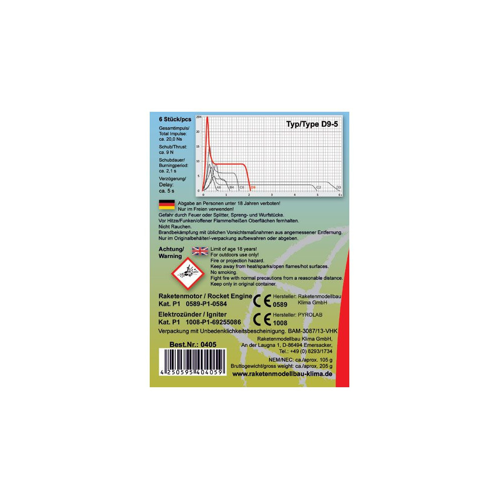 Klima rakétamotor D9-5 EL (6db)