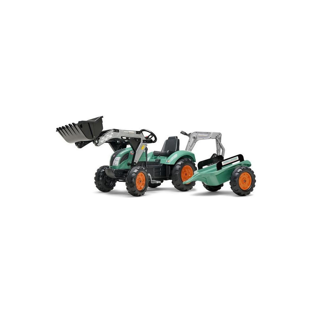 FALK márkájú pedálos gyerektraktor. Egy igazi traktor másolata. A gyerektraktor homlokrakodóval, kotrógéppel, iparvágánnyal, kürttel és egyéb lenyűgöző funkciókkal van felszerelve a végtelen gyermekjátékokhoz. 3-7 éves gyermekek számára tervezték.