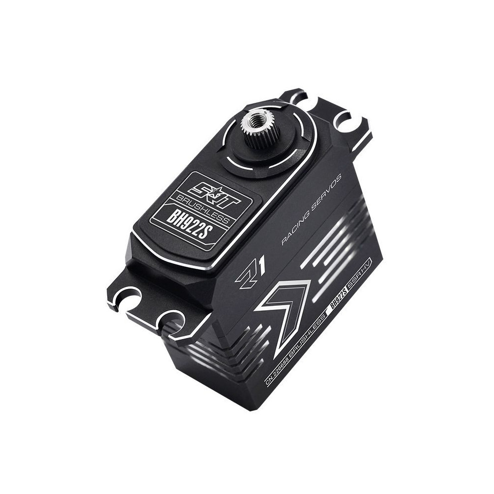 BH922S HV generációs BRUSCHLESS (kefe nélküli motor) szervó, amelyet kifejezetten 1/8 Off-Road modellekhez és RC helikopterekhez terveztek, akár 0,055s reakciósebességgel és 22kg/cm tolóerővel/nyomatékkal. A szervó teljesen alumínium házzal rendelkezik az optimális hőmérséklet, de a merevség elérése érdekében is, míg a kefe nélküli motor és a titán/acél fogaskerekek nagy teljesítményt és tartósságot biztosítanak. A szervó 300 mm-es JR csatlakozóval van felszerelve, fekete színben.