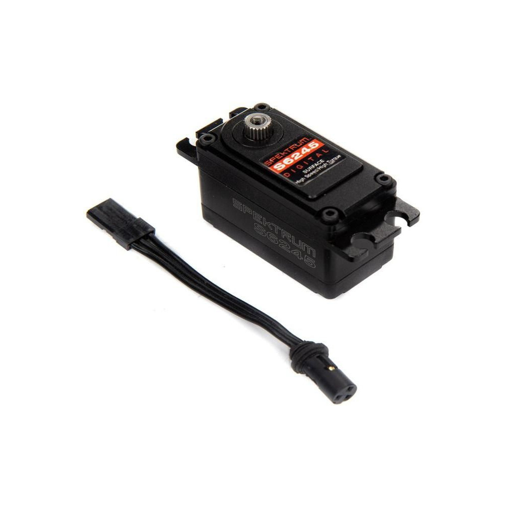 Egy gyors és nagy teljesítményű HV szervó 1:10 RC autómodellekhez, a Spektrum S6245 Car High Speed High Torque szervó alumínium testtel 19,1kg/cm nyomatékkal rendelkezik 7,4V-on és 0,06s/60° sebességgel 7,4V-on. Fém fogaskerekek, 2 golyóscsapágy, méretek: 41x21x30 mm, súly 62g. 23T milliszekundum