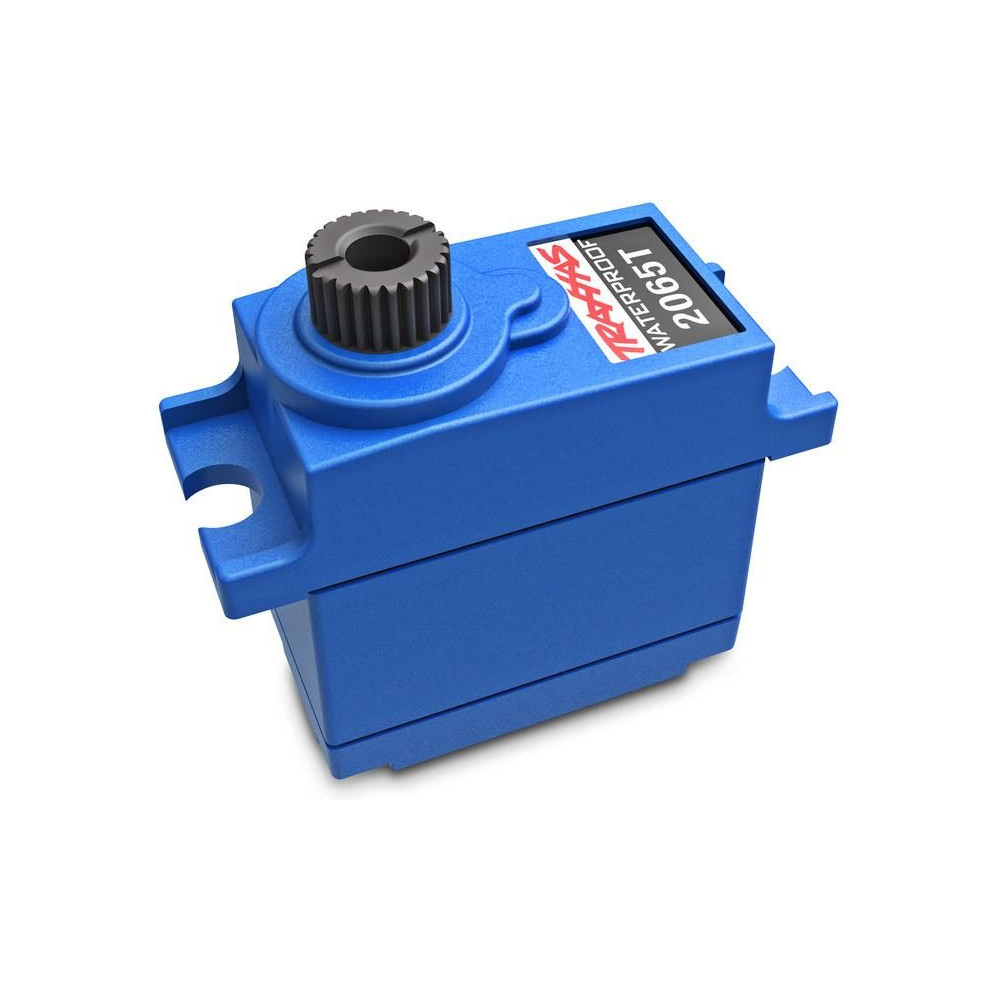 Mikro szervó Traxxas 2065T. Nylon fogaskerekek fém fő középső fogaskerékkel. Nyomaték 2,5 kg.cm, sebesség 0,20 s/60° 6,0 V-on. Méret 12,8 x 22,8 x 23,0 mm. Súly 11 g. Fokozott vízállóság.