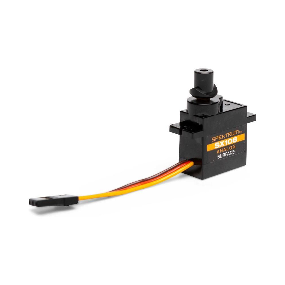 A Spectrum SX108 Micro digitális szervó kifejezetten mikro- és mini modellautókhoz készült kormányzáshoz vagy kiegészítő funkciókhoz, például 2 sebességes sebességváltókhoz és Dig. Fém fogaskerekek, 3kg.cm nyomaték @ 6V, 20T mikro milliszekundum, 0,08 sec/60° sebesség @ 6V. Súly 10g, méretek 12x23x22mm.